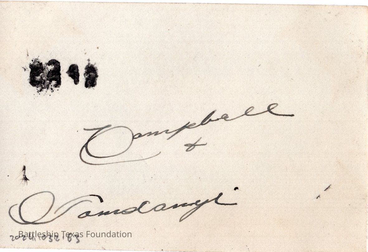 From a donated collection of individual photographs and pages out of a 1930s Texas crewmember's photo album. Items donated by the Los Angeles Maritime Museum. Many photographs had writing on the pages of the book, now discarded. The caption formerly on the page for this photo read,