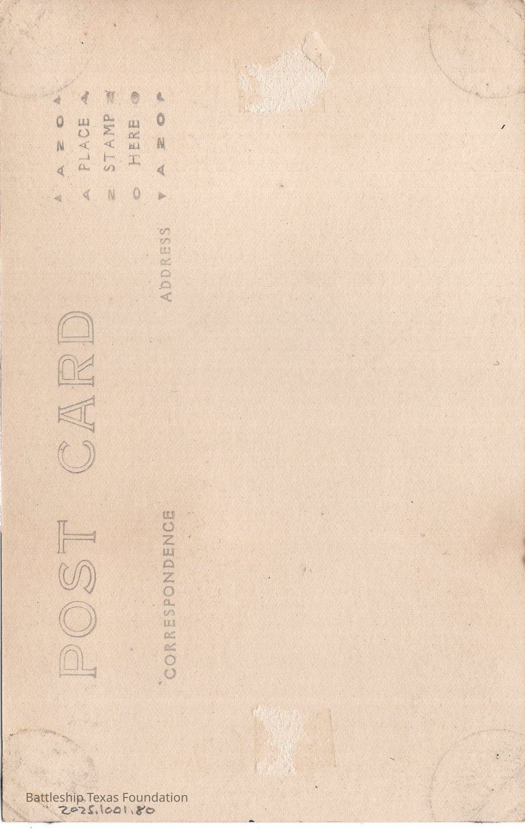 Entries 2025.1001.23 through 2025.1001.99 were taken out of the significantly deteriorated pages of at least one photo album belonging to Texas crew members and bought by BTF. The album photos date to the early to mid 1920s. Each photo had writing on the pages of the book, now discarded. The caption formerly on the page for this photo read,