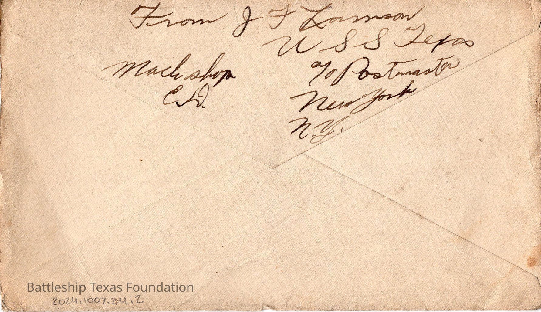 Battleship Texas had her own post office. All mail passed through a censor before leaving the ship. Once the package is checked, it was stamped with a “U.S.S. TEXAS” stamp. If in a port, mail could carry the markers of the post office on shore.Collection