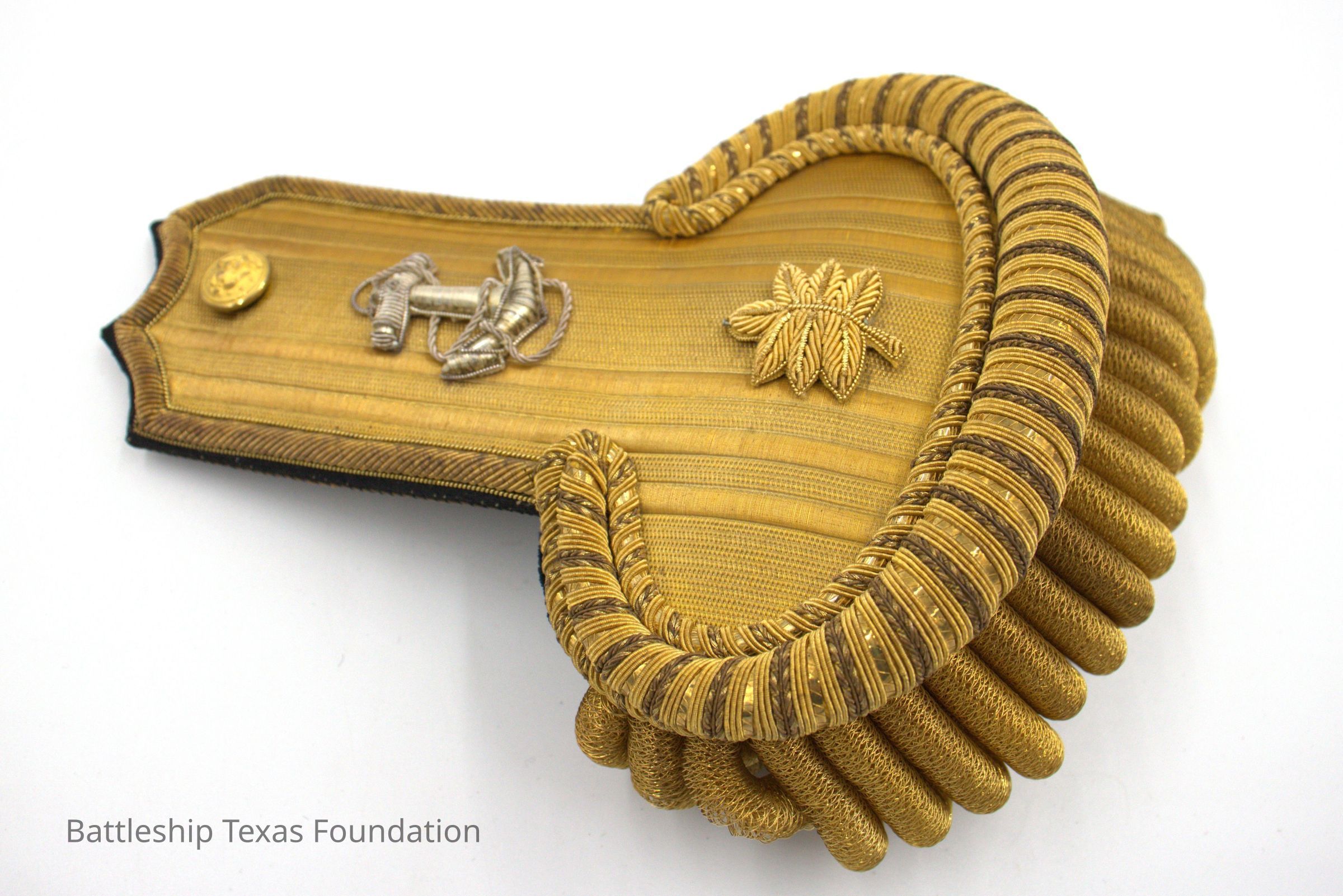 Left epaulette belonging to Charles Pratt. O-4 gold maple leaf below fouled anchor.Context