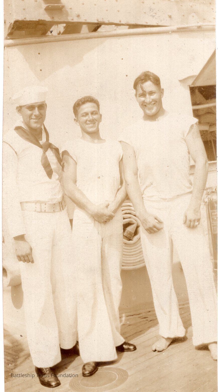 From a donated collection of individual photographs and pages out of a 1930s Texas crewmember's photo album. Items donated by the Los Angeles Maritime Museum. Many photographs had writing on the pages of the book, now discarded. The caption formerly on the page for this photo read, "BRUTES"
