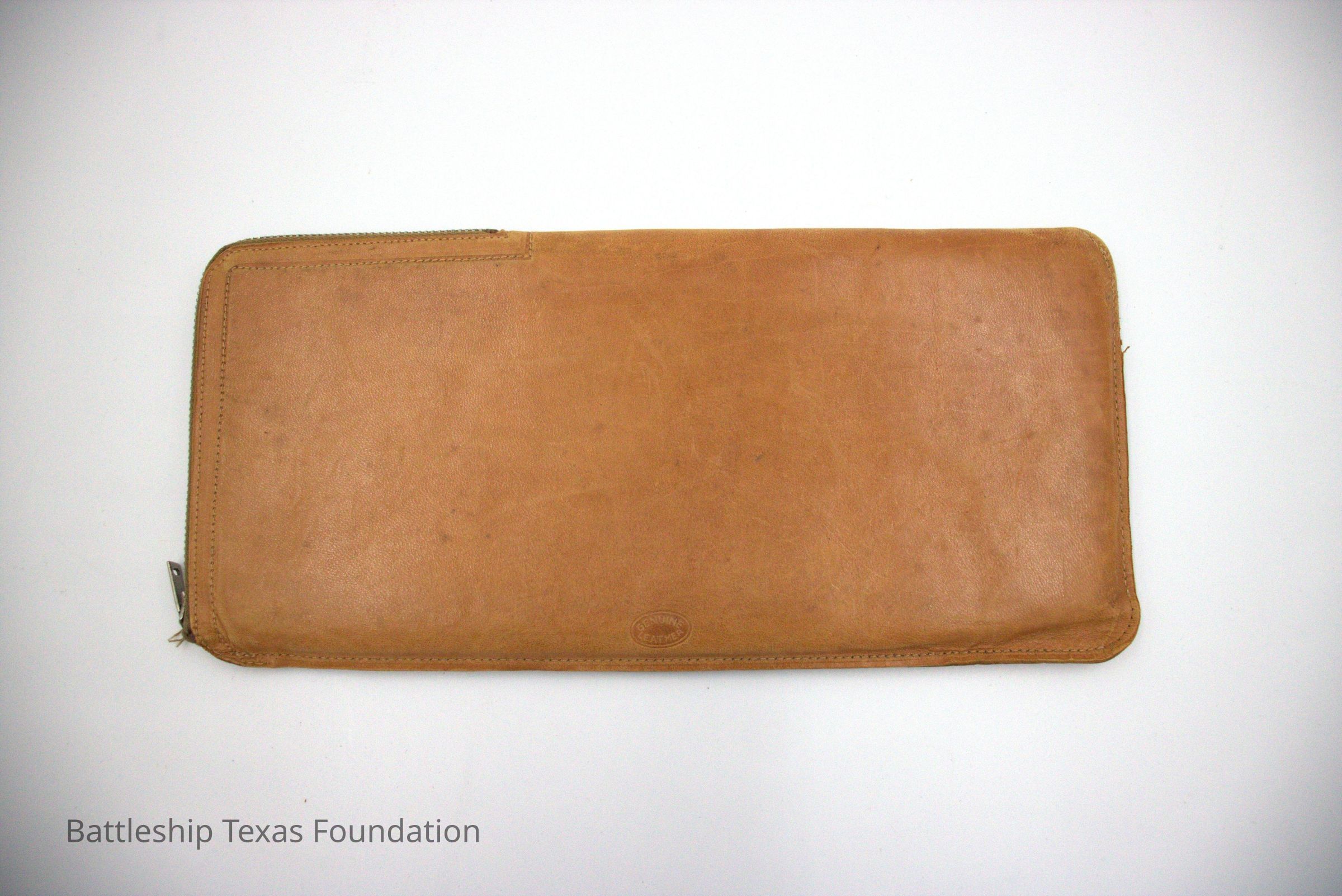 Light brown leather pouch with the USMC EGA on the front. Used for holding documents.Context