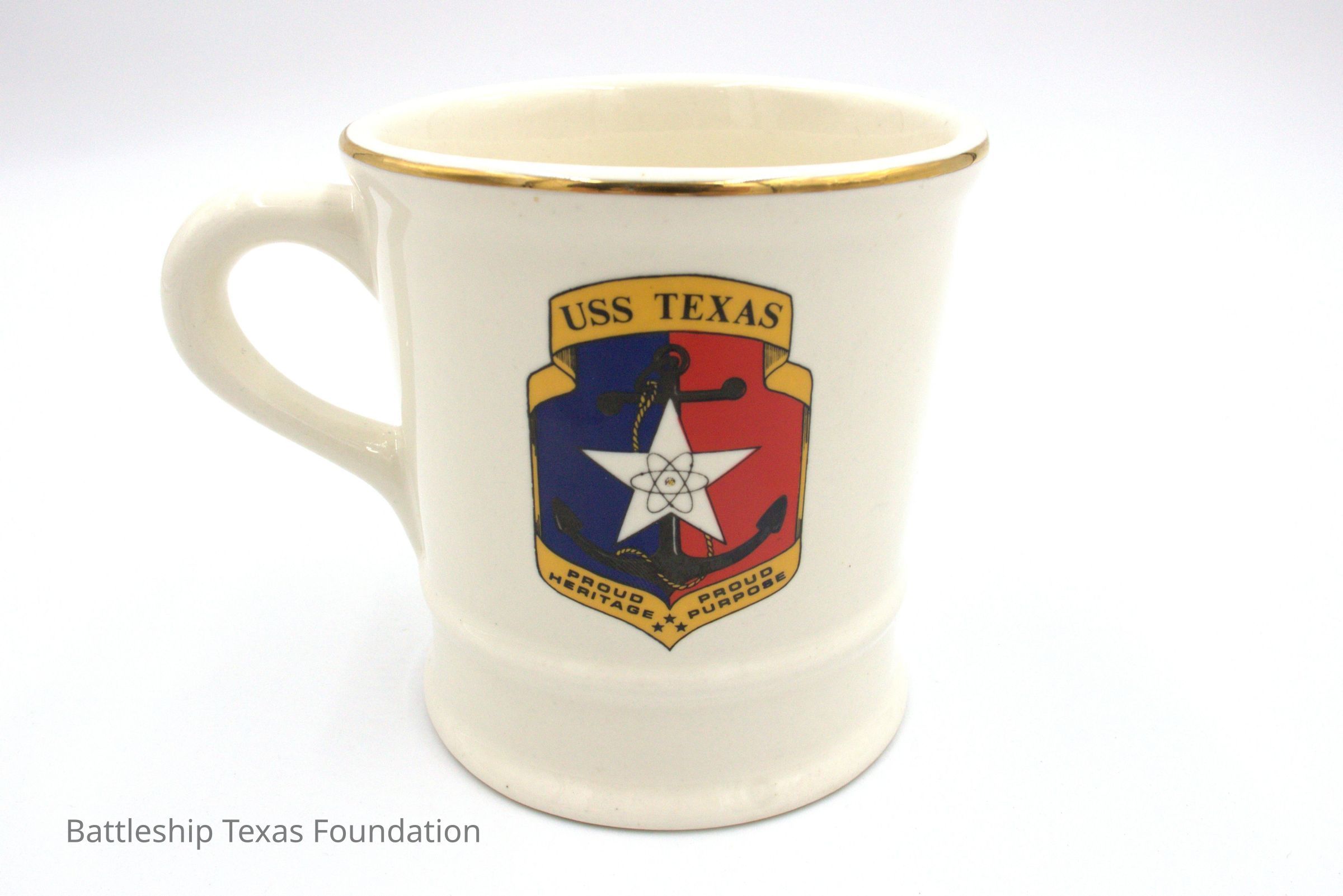 Mug used by crewmember of USS Texas (CGN-39) and features an artistic impression of the cruiser on one side of the mug.Context