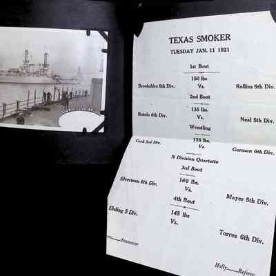 Lawrence Gaddis collected many souvenirs during his travels around North and South America, as well as from events held on the ship or by the crew, and articles mentioning Battleship Texas in the papers.