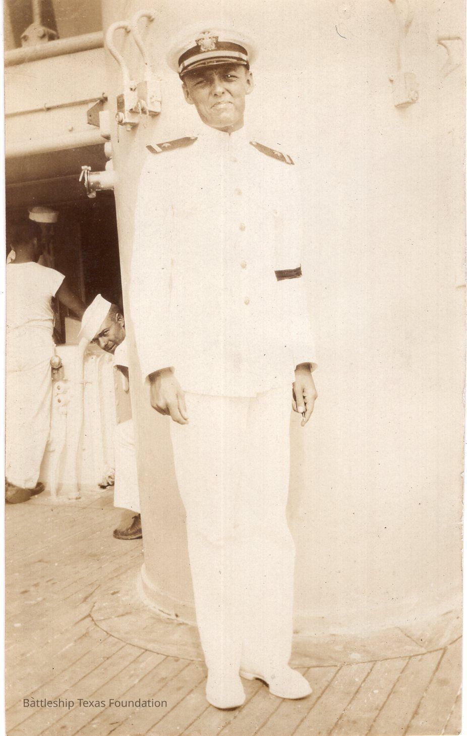 From a donated collection of individual photographs and pages out of a 1930s Texas crewmember's photo album. Items donated by the Los Angeles Maritime Museum. Many photographs had writing on the pages of the book, now discarded. The caption formerly on the page for this photo read, "ENSIGN TODD JR"
