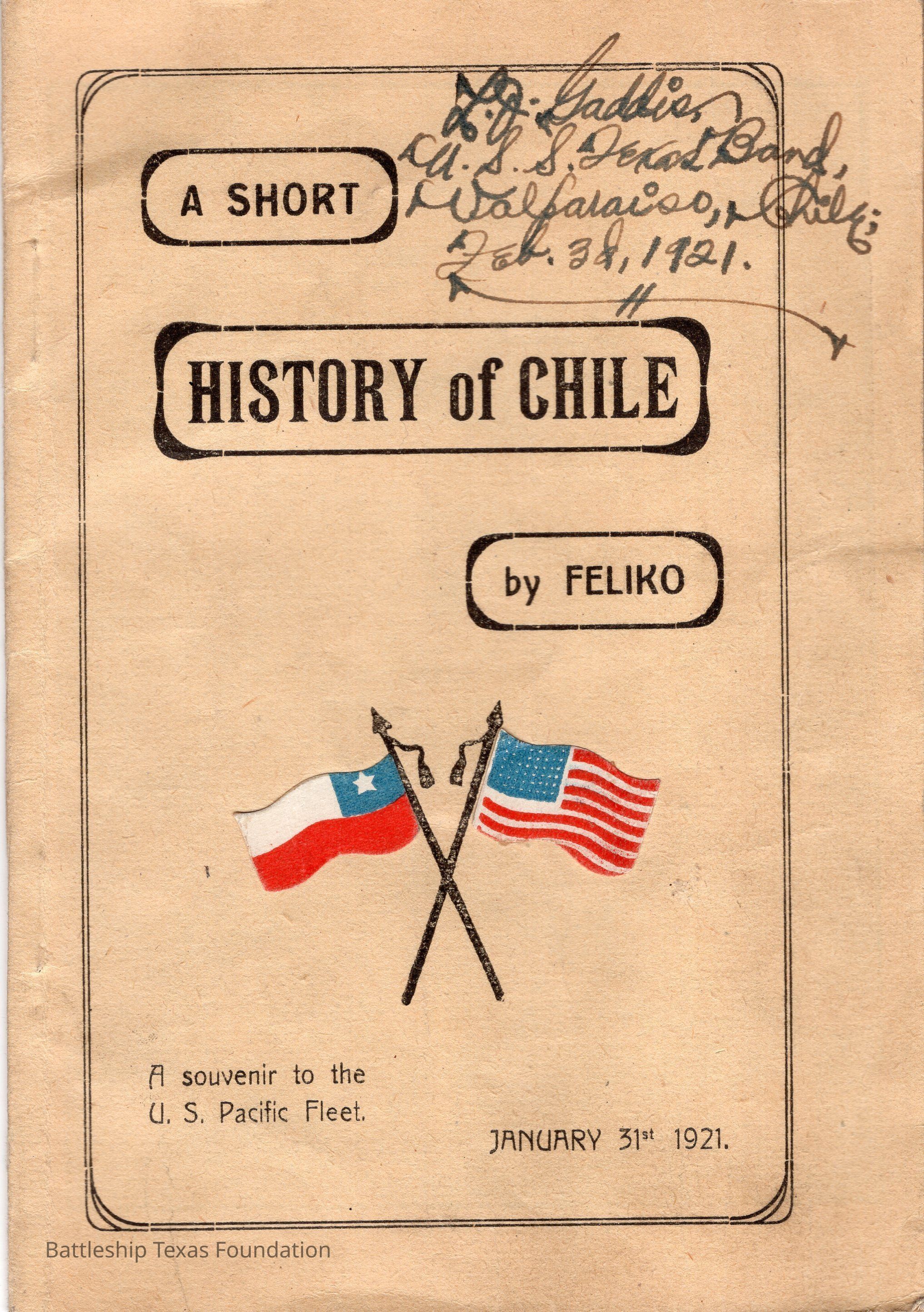 Small booklet given to sailors and marines as a souvenir. Gaddis got the book in February 1921.Context
