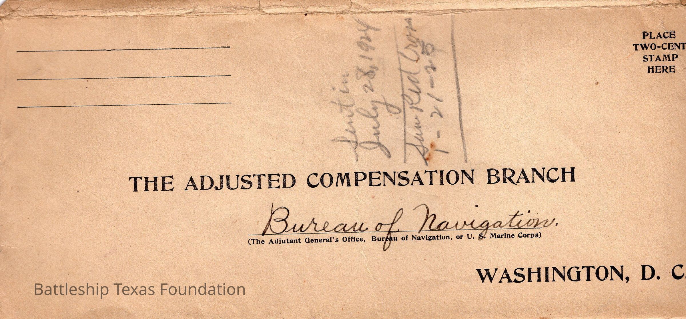 Envelope from adjusted compensation branch in Washington DC.Context