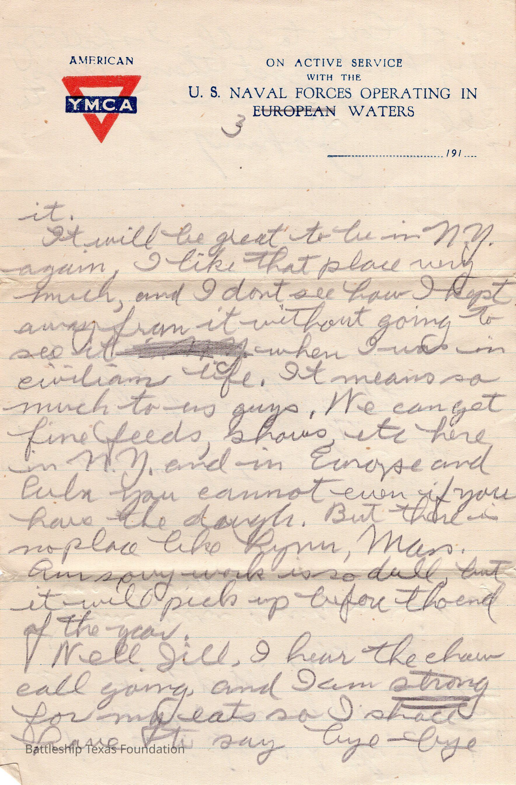 John Lamson was a MM1c on Battleship Texas from May 1917 to June 1919. Throughout his time on Texas, he sent a letter to his family at least once a week, often more. Longer stretches of absence are explained either by movement across the Atlantic, or with the Grand Fleet.