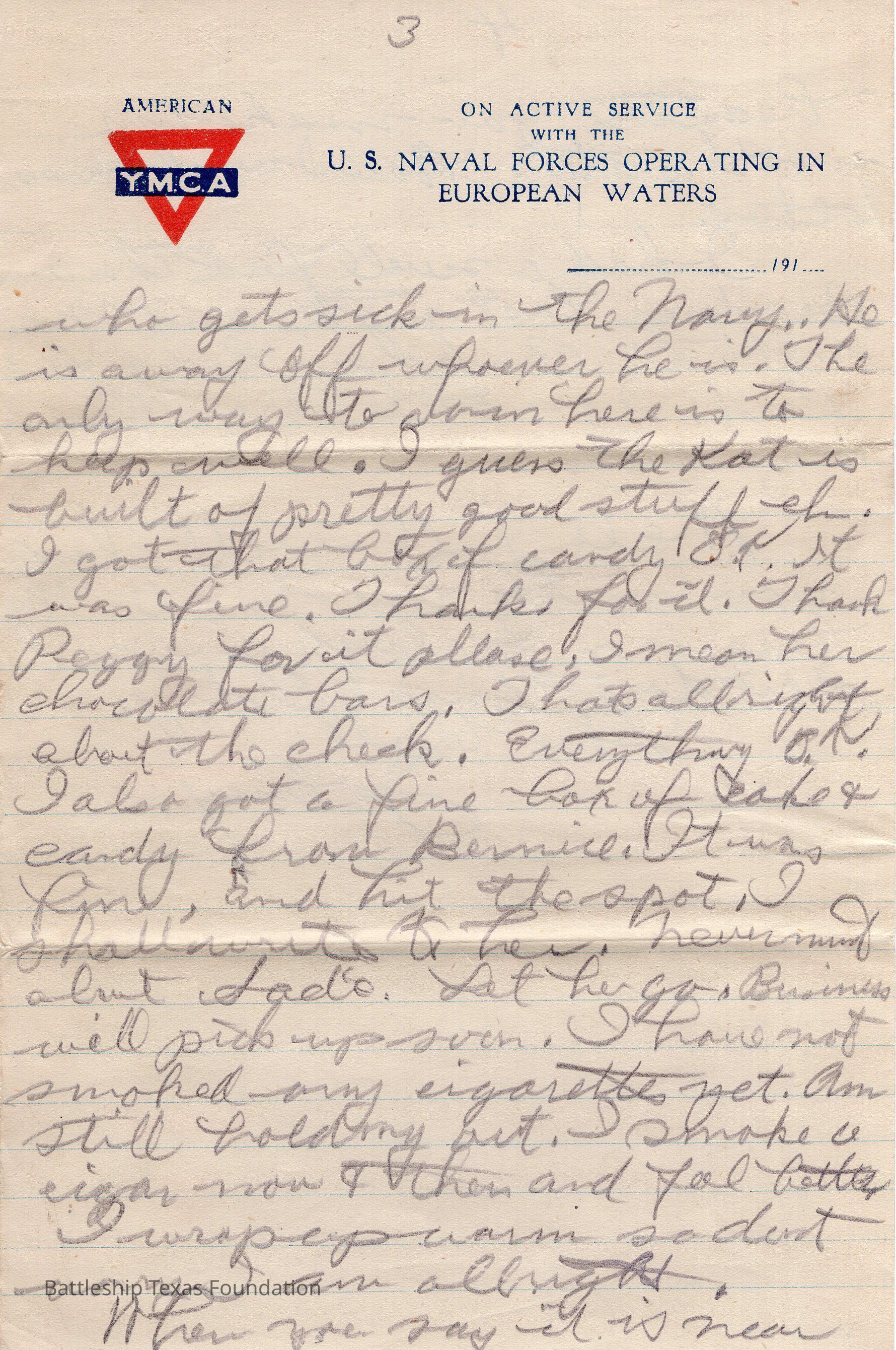John Lamson was a MM1c on Battleship Texas from May 1917 to June 1919. Throughout his time on Texas, he sent a letter to his family at least once a week, often more. Longer stretches of absence are explained either by movement across the Atlantic, or with the Grand Fleet.