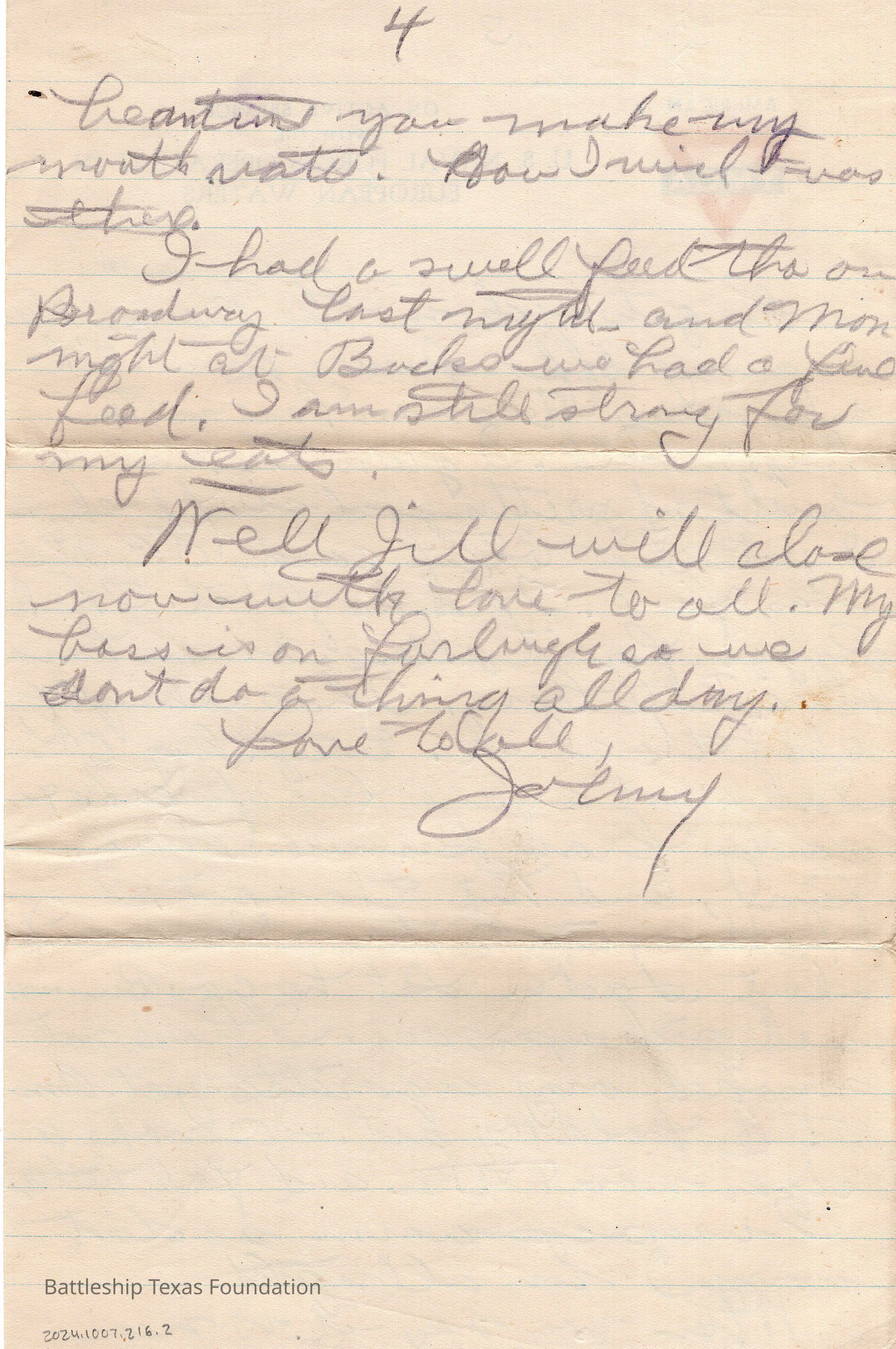 Second page of April 16, 1919 letter addressed to Jill.Context