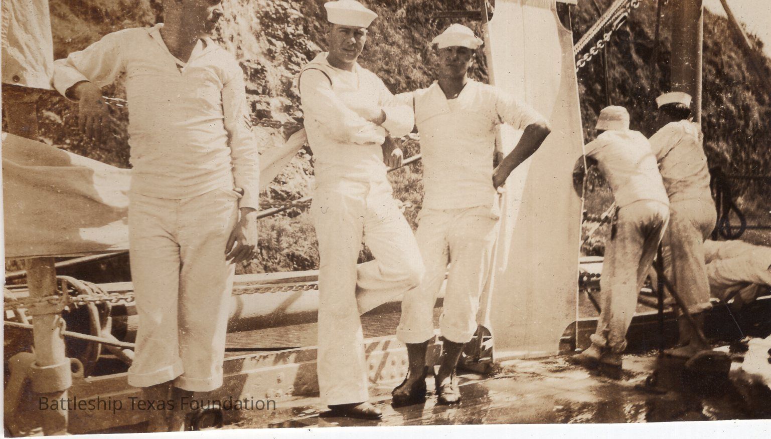 From a donated collection of individual photographs and pages out of a Texas crewmember's photo album. Items donated by the Los Angeles Maritime Museum.