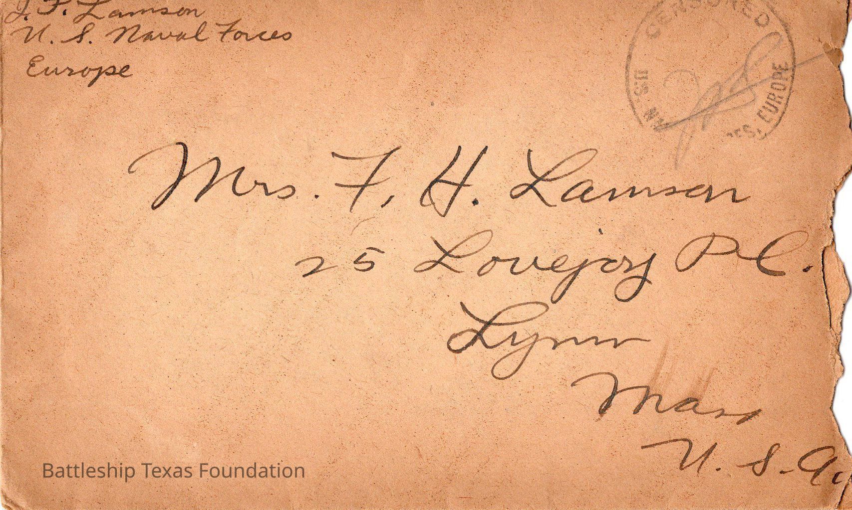 Lamson 1918/08/25 envelopeEntry/Object ID