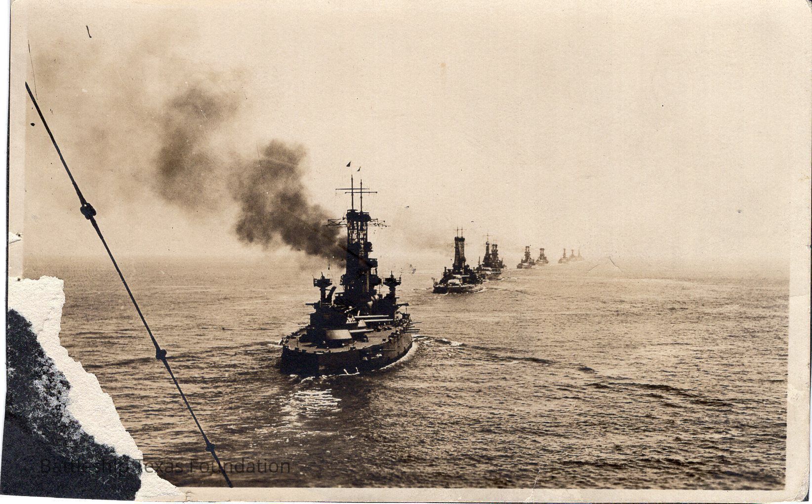 Nine battleships taken from tenth in back. Photo possibly taken from Texas, or could simply be the fleet she was in.
