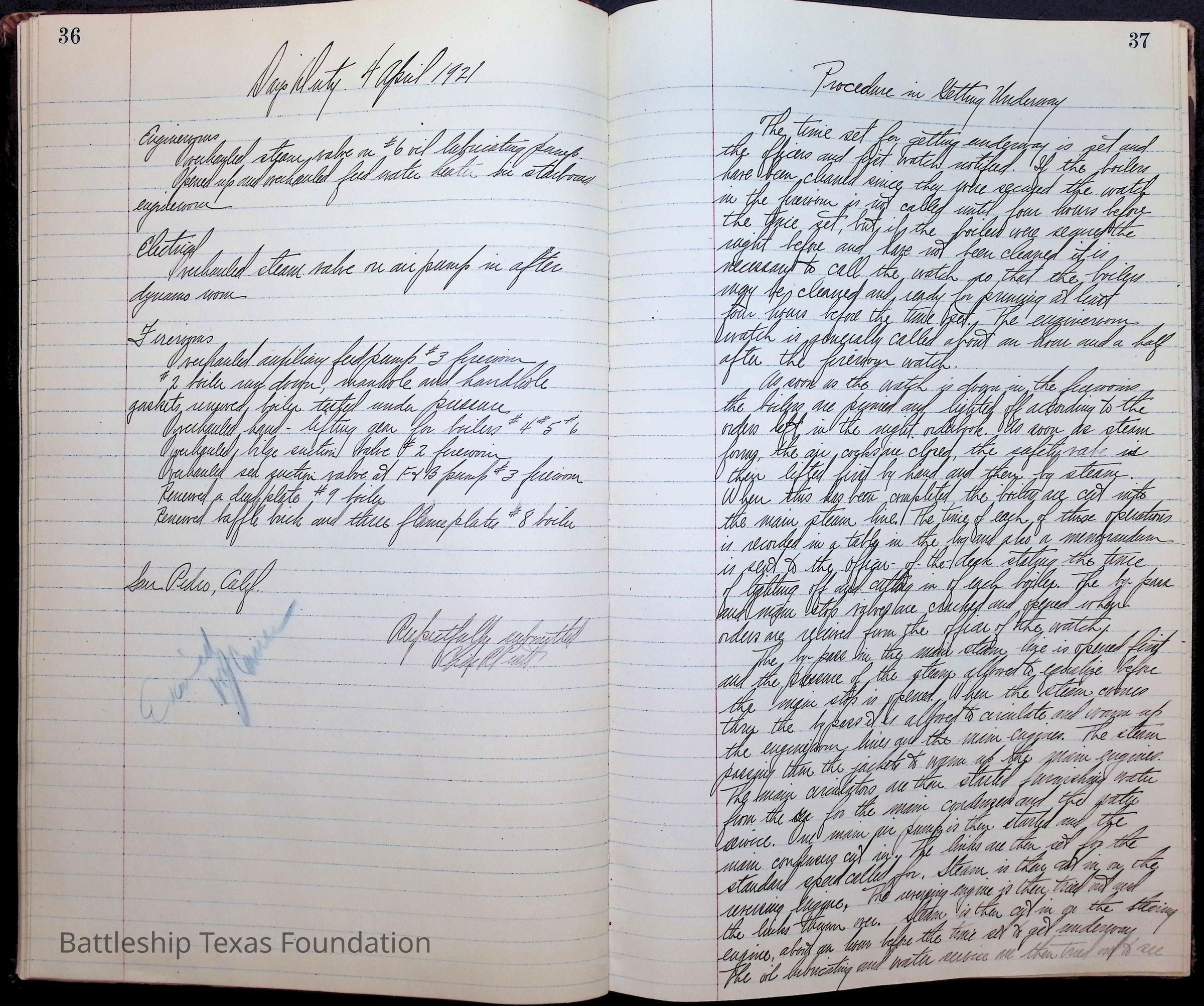 Battleship Texas Engineering JournalEntry/Object ID