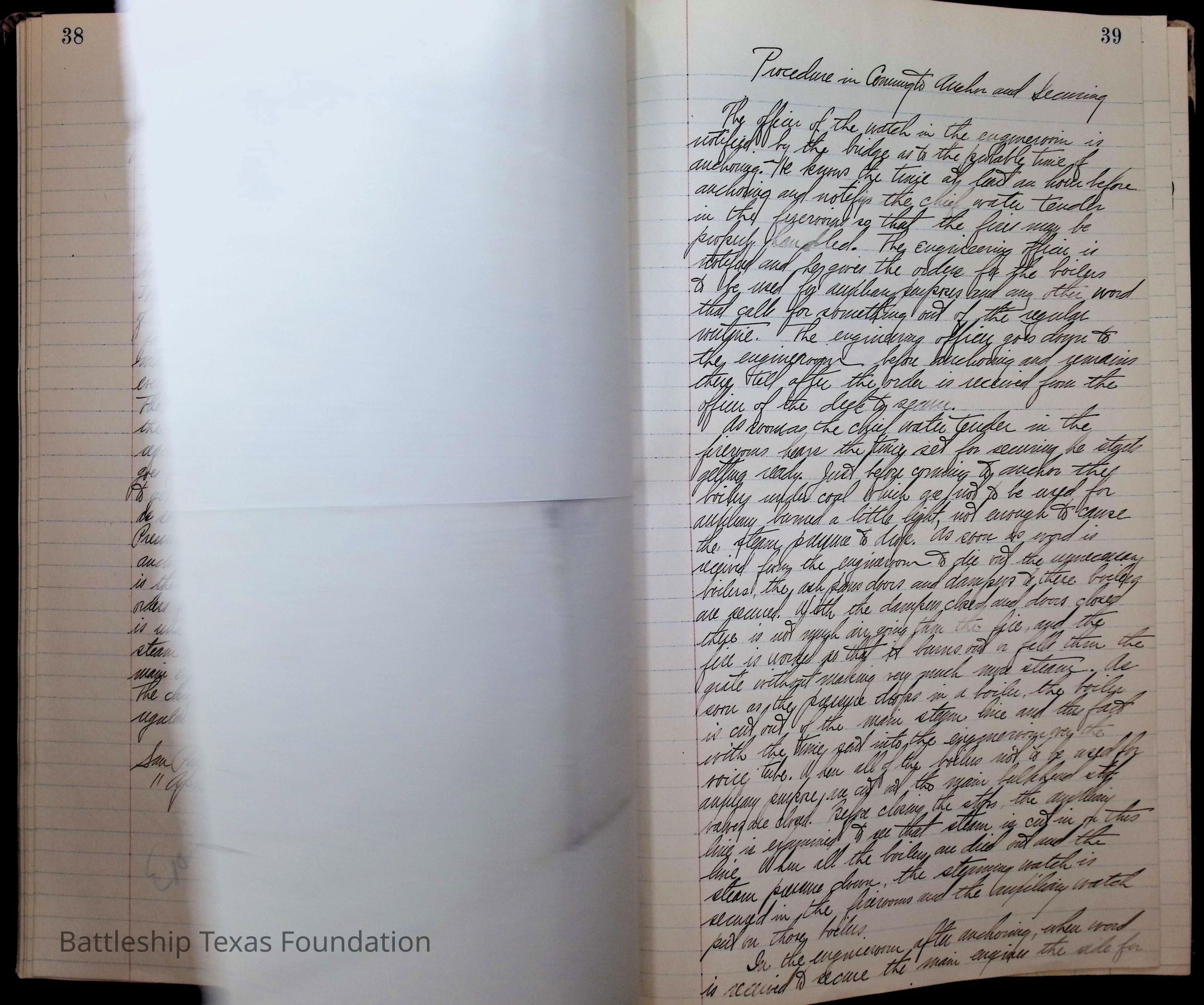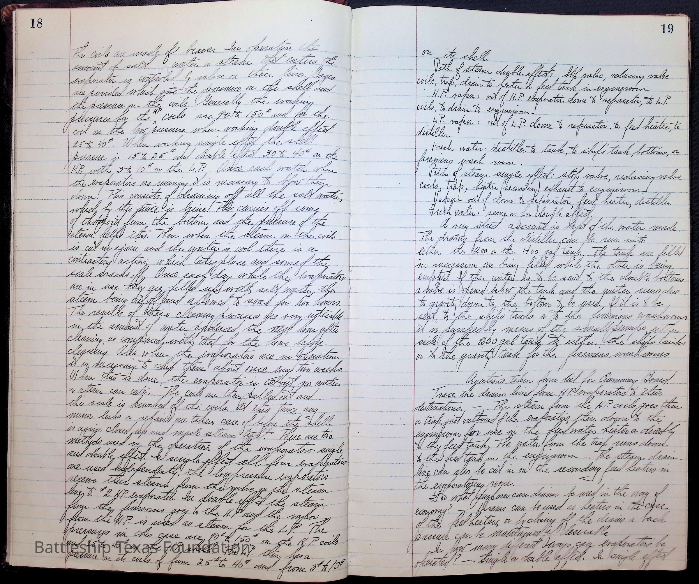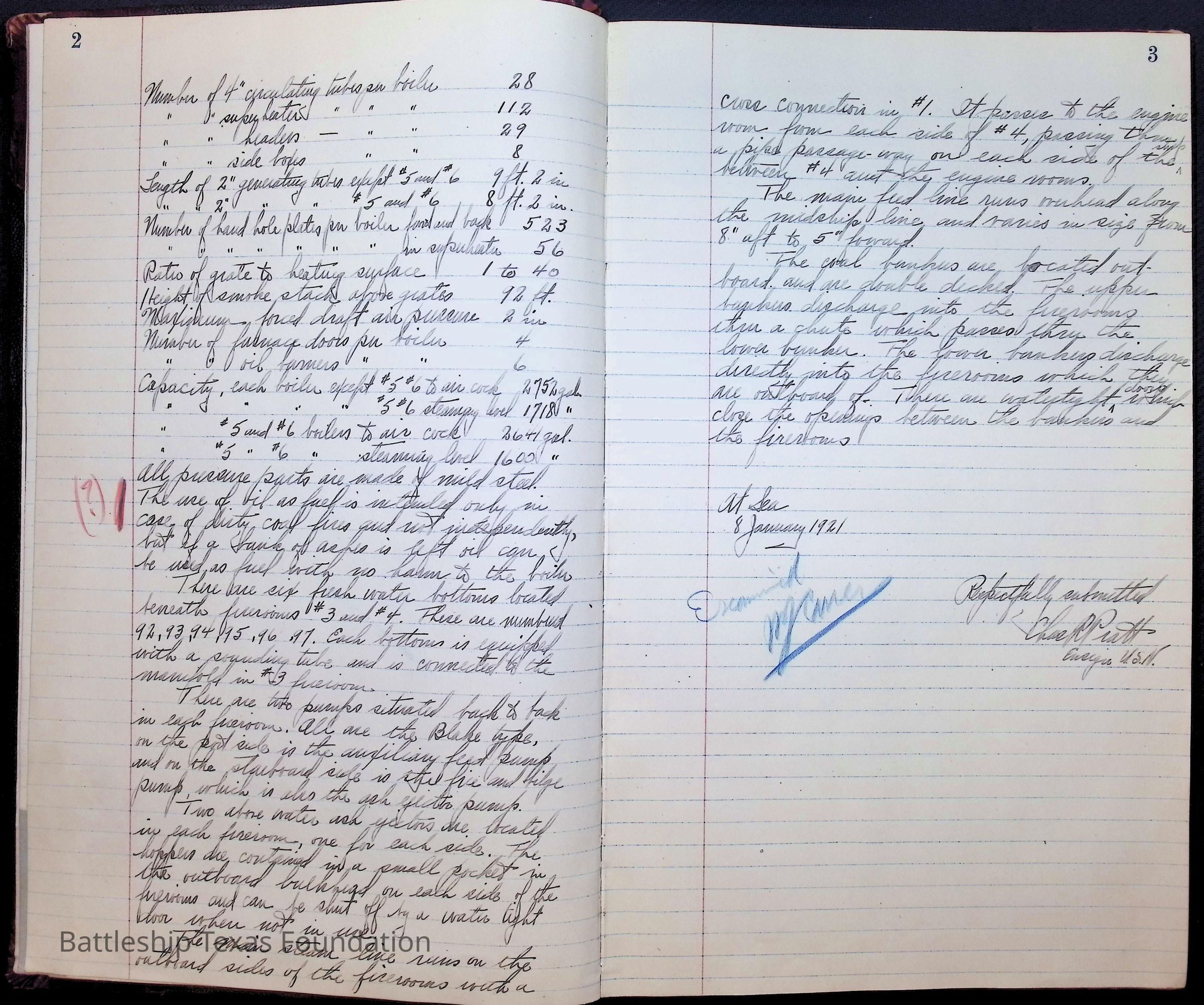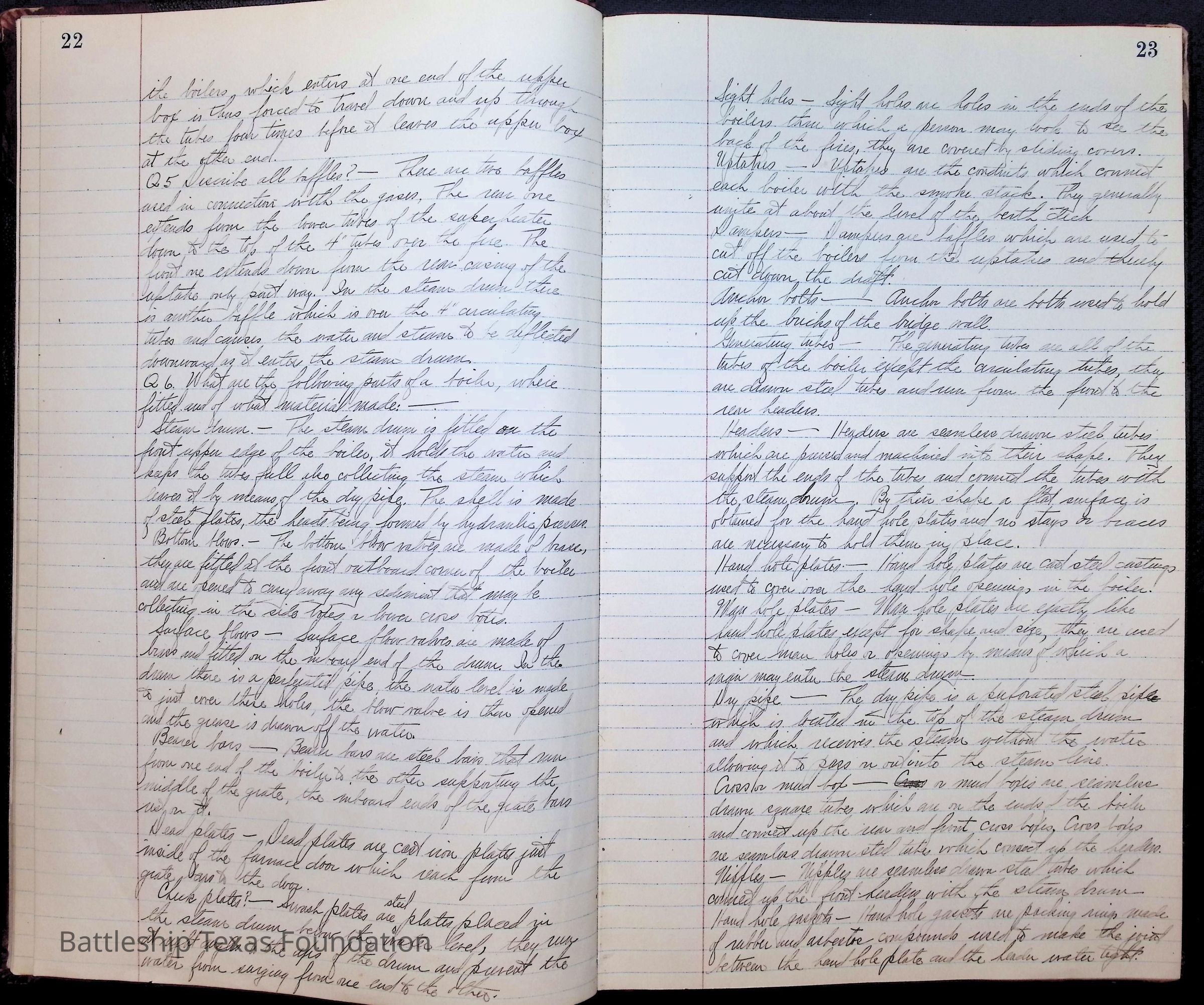 Pages 1-41: notes and writings on engineering spaces on Battleship Texas