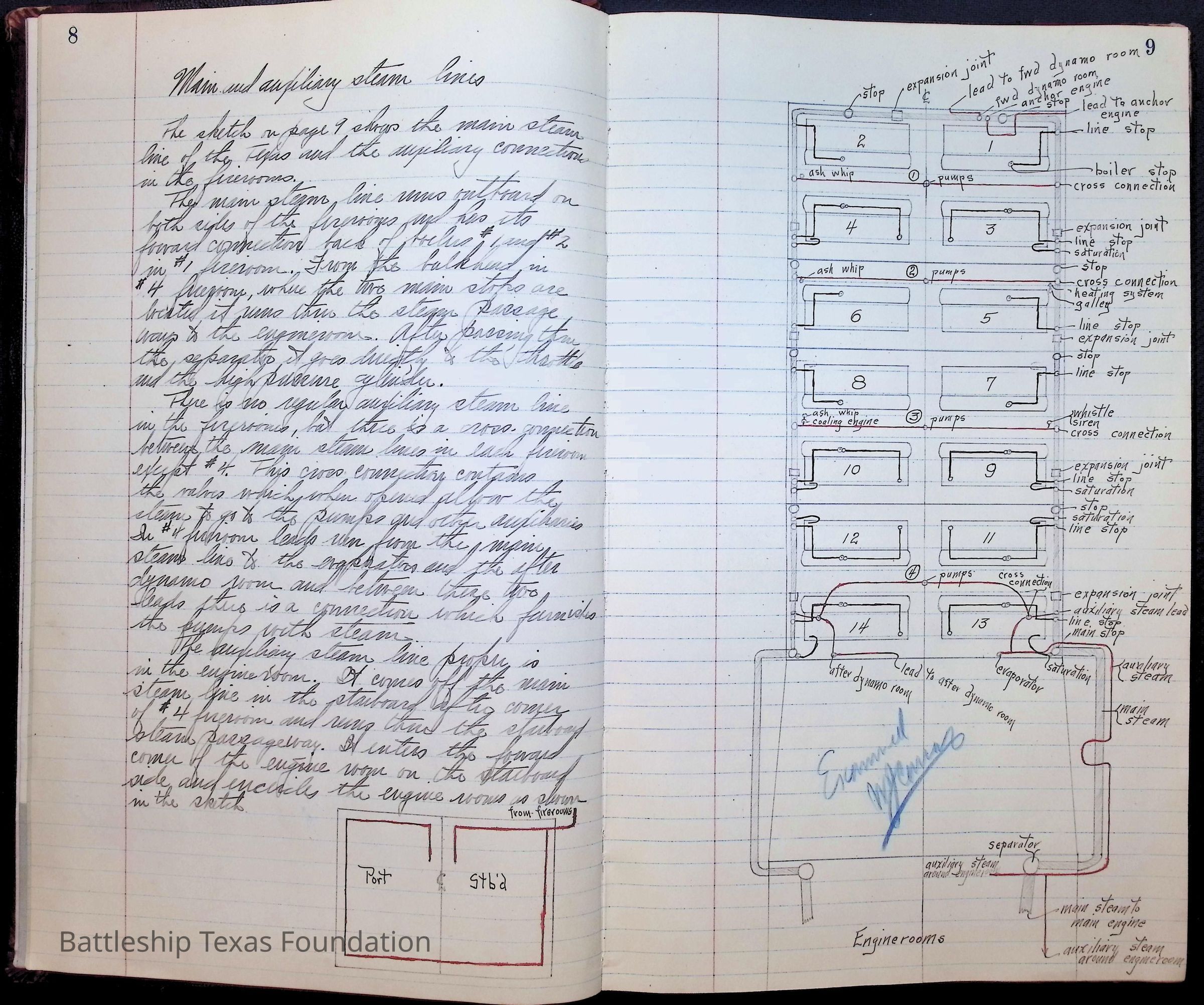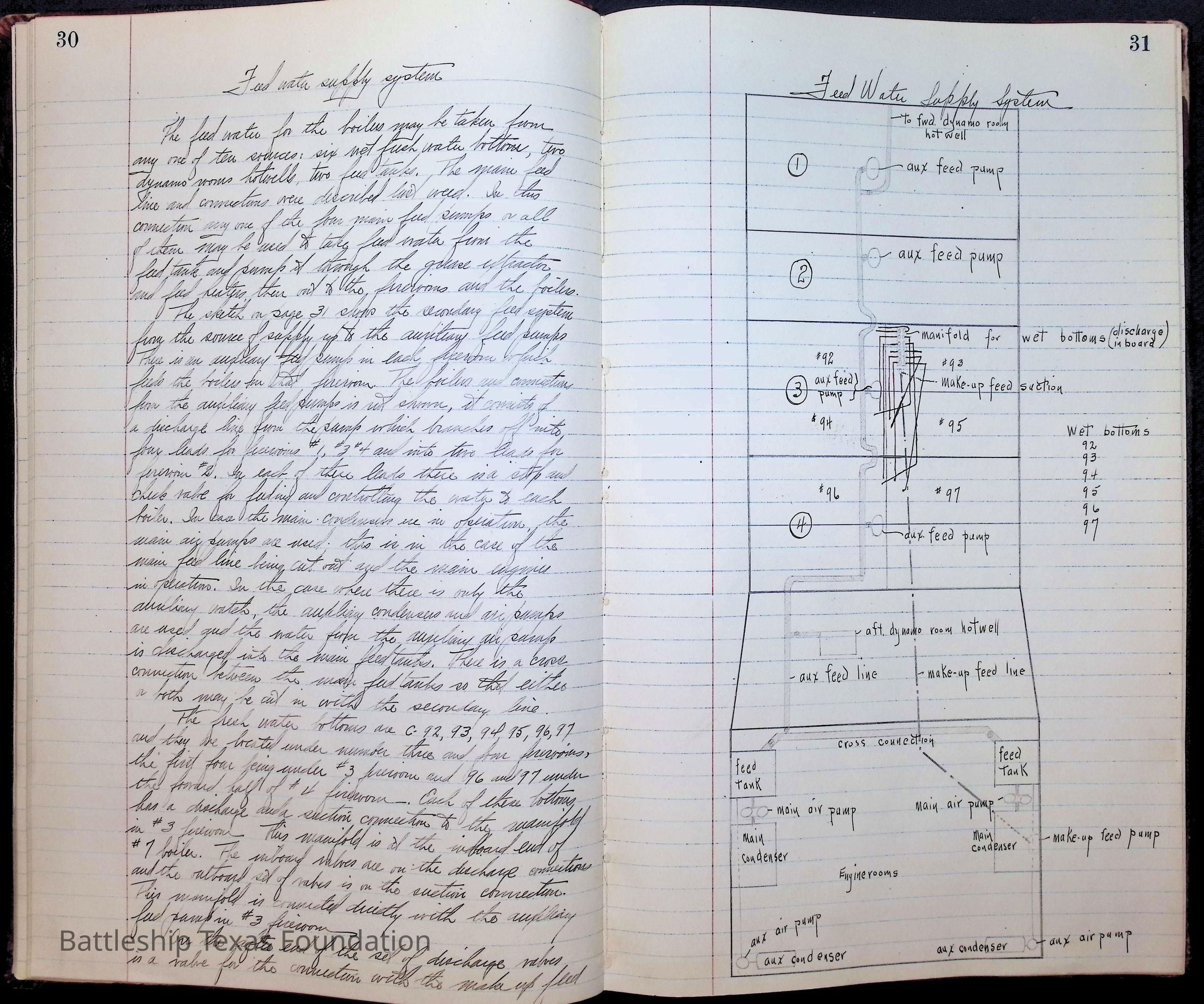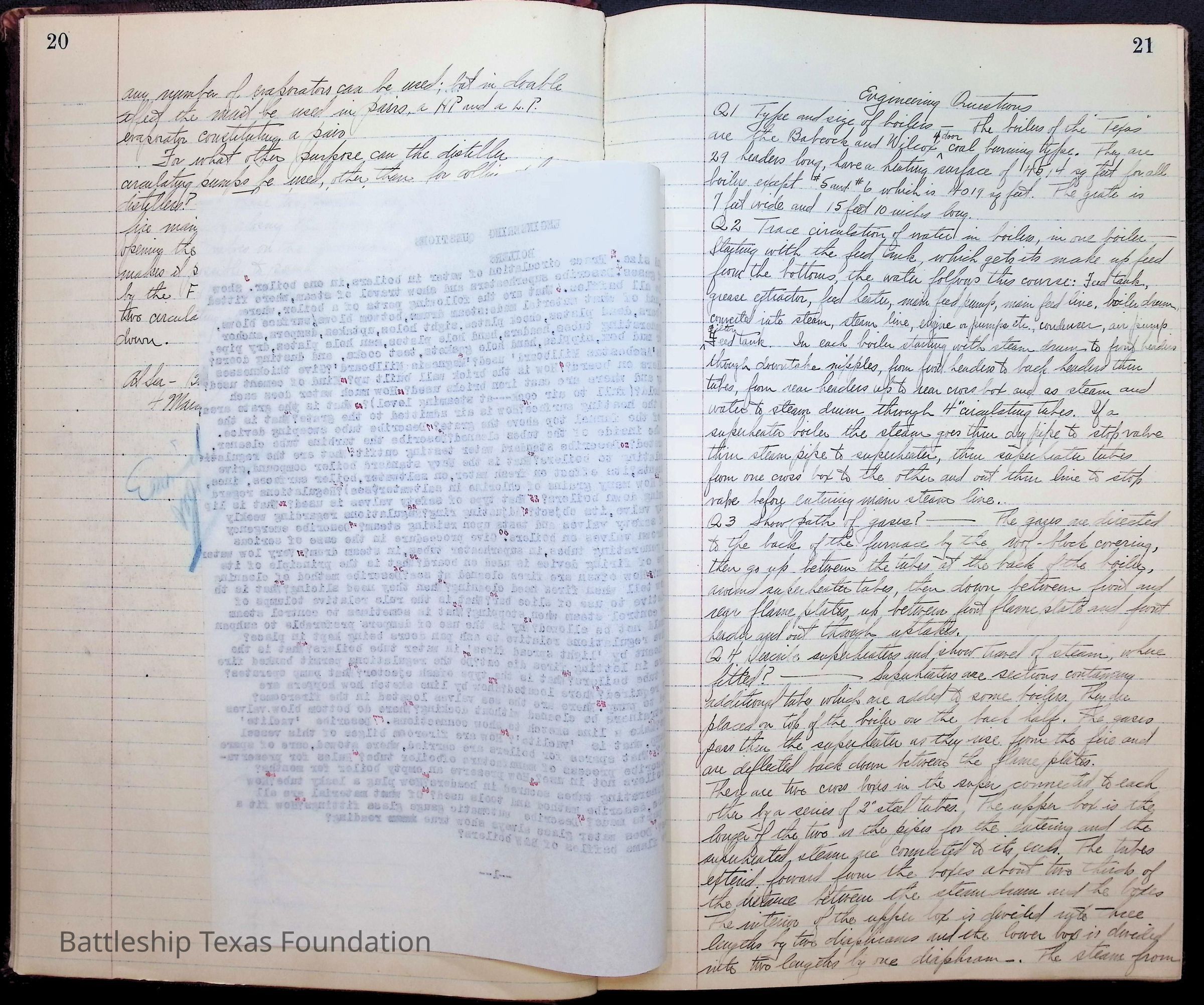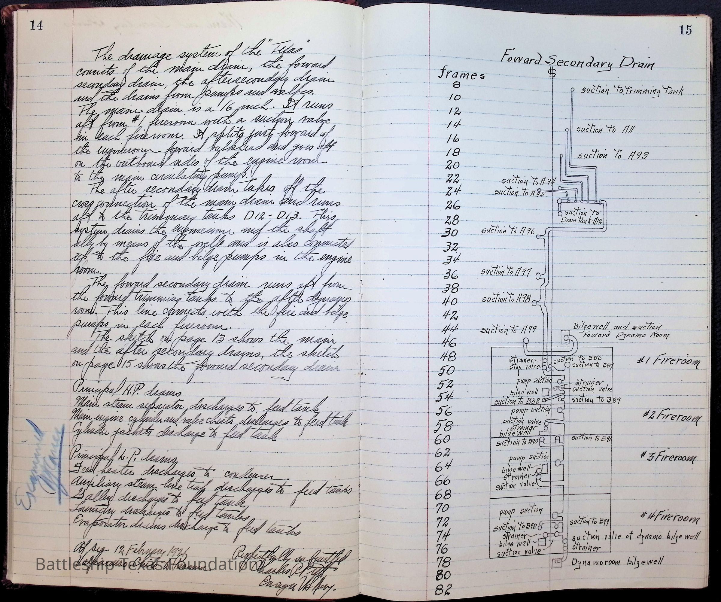 Pages 1-41: notes and writings on engineering spaces on Battleship Texas