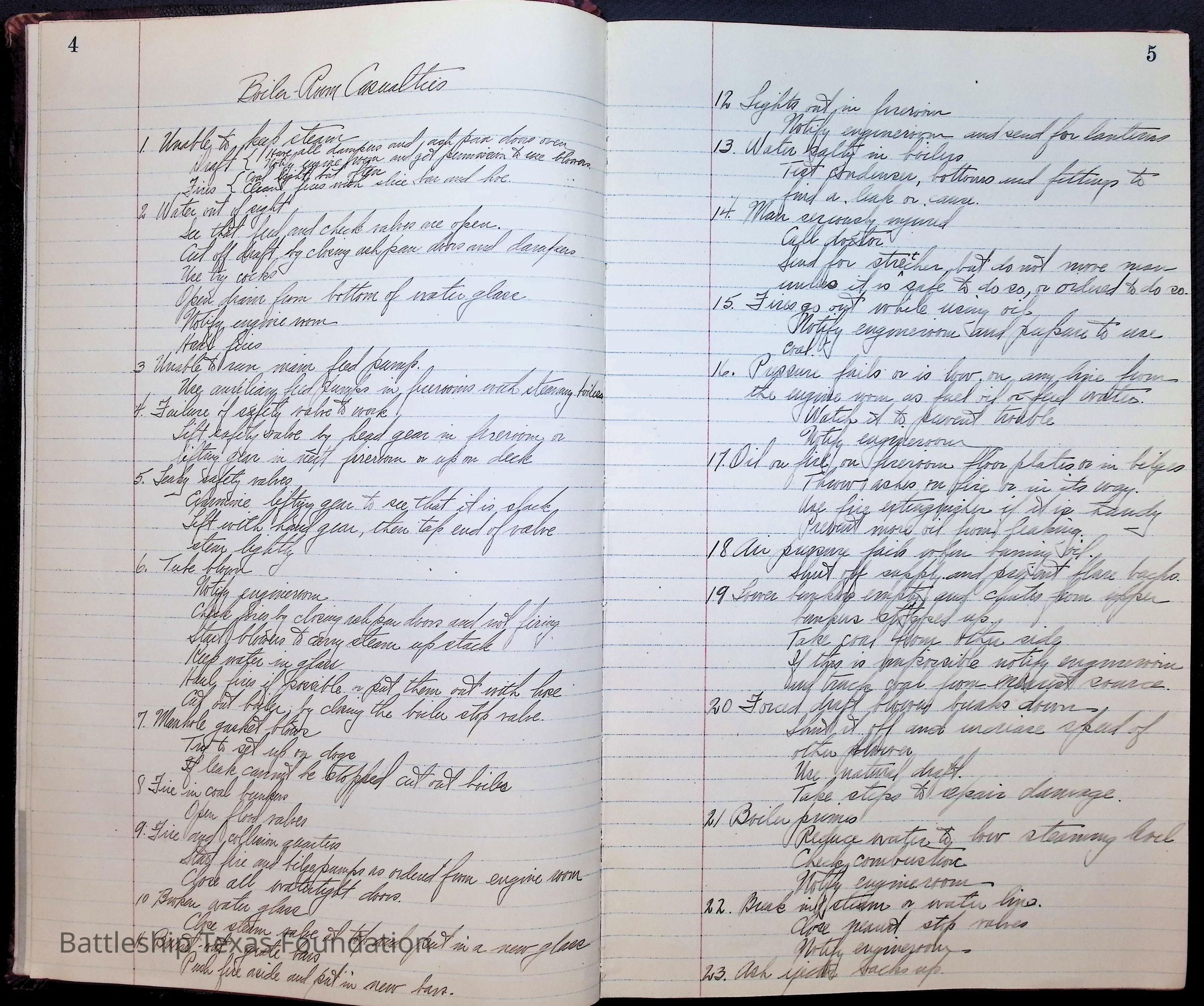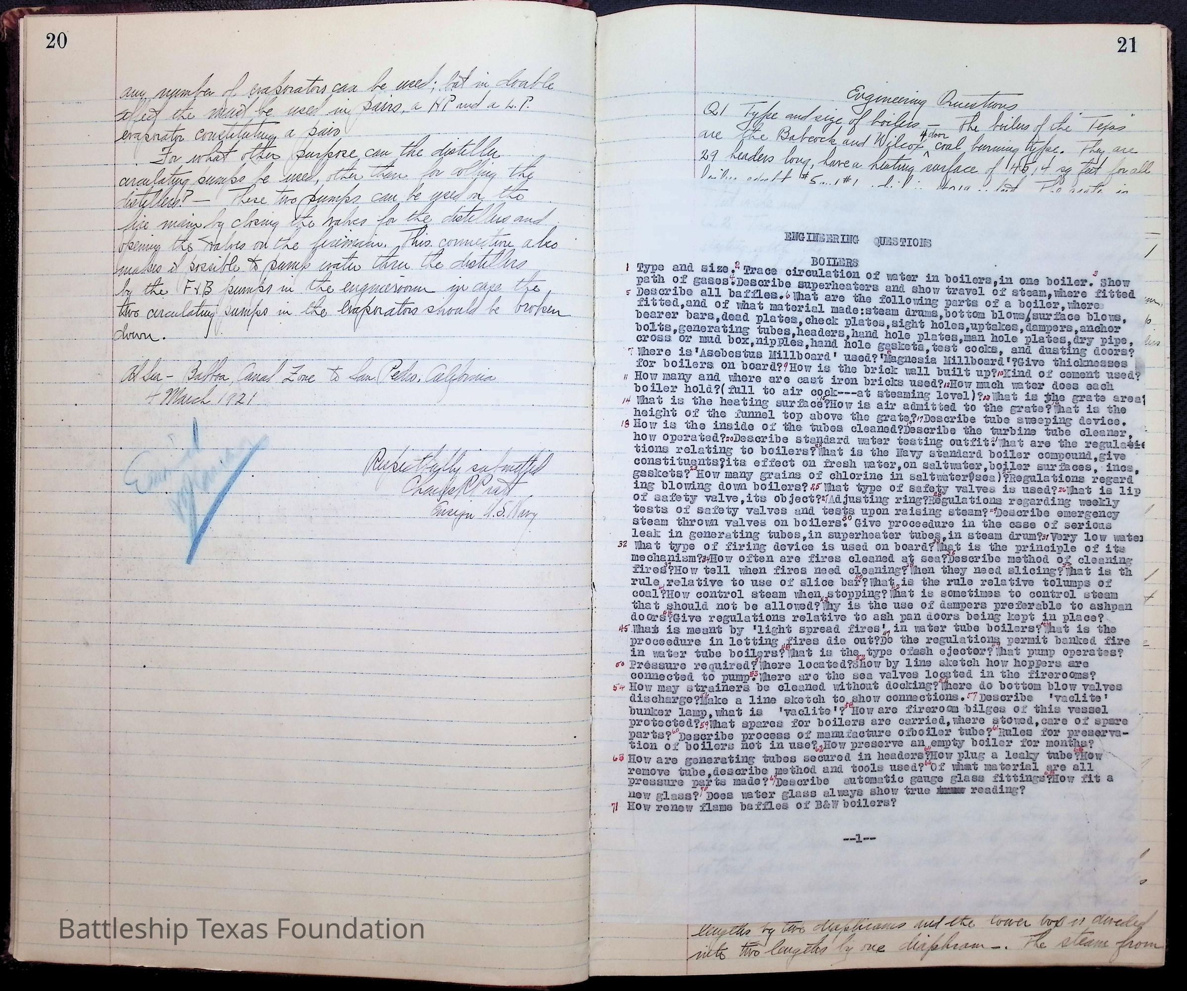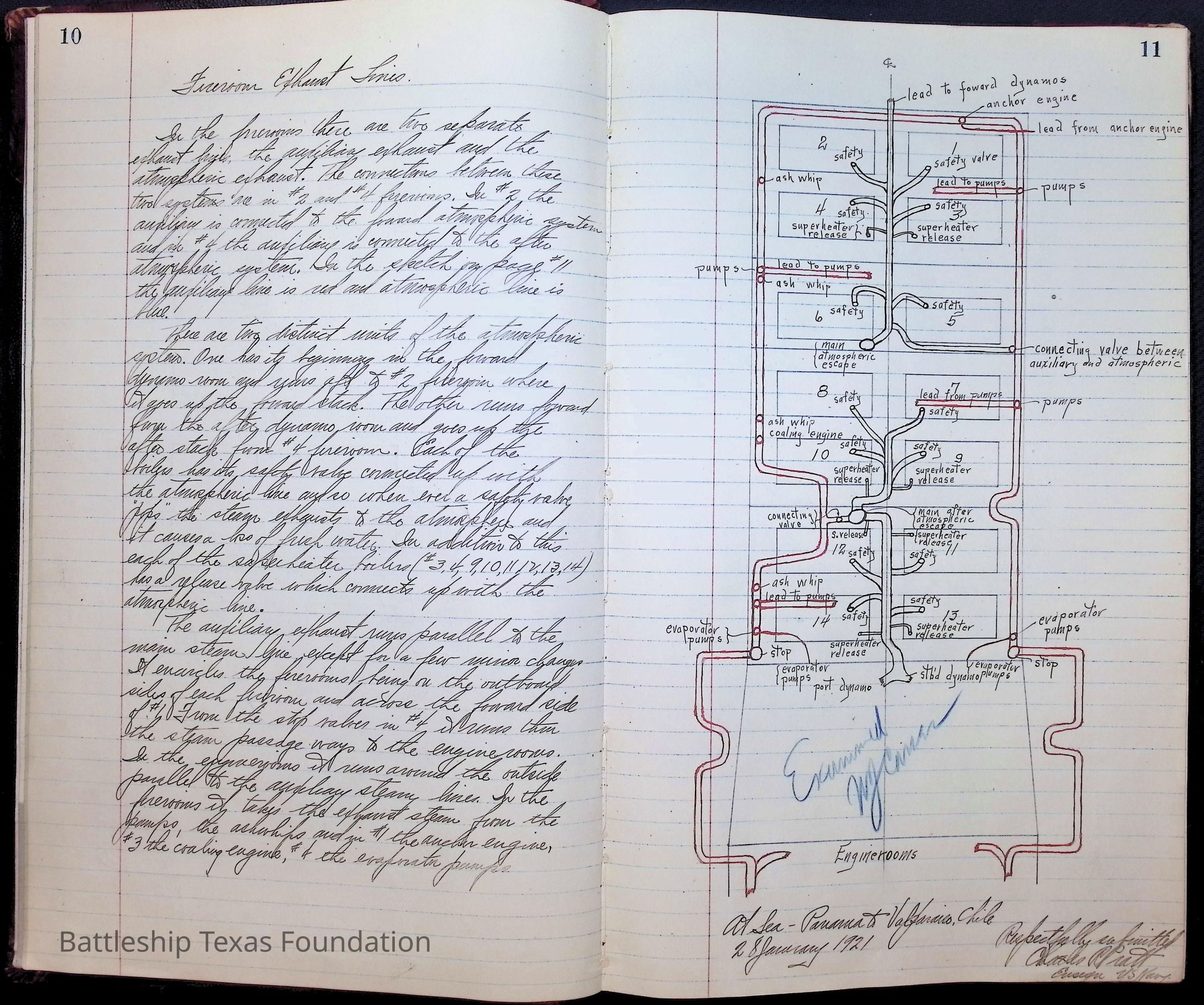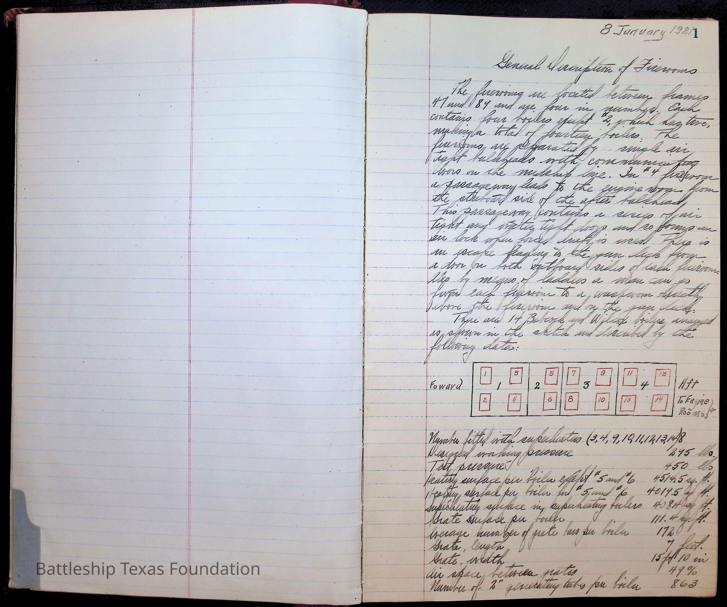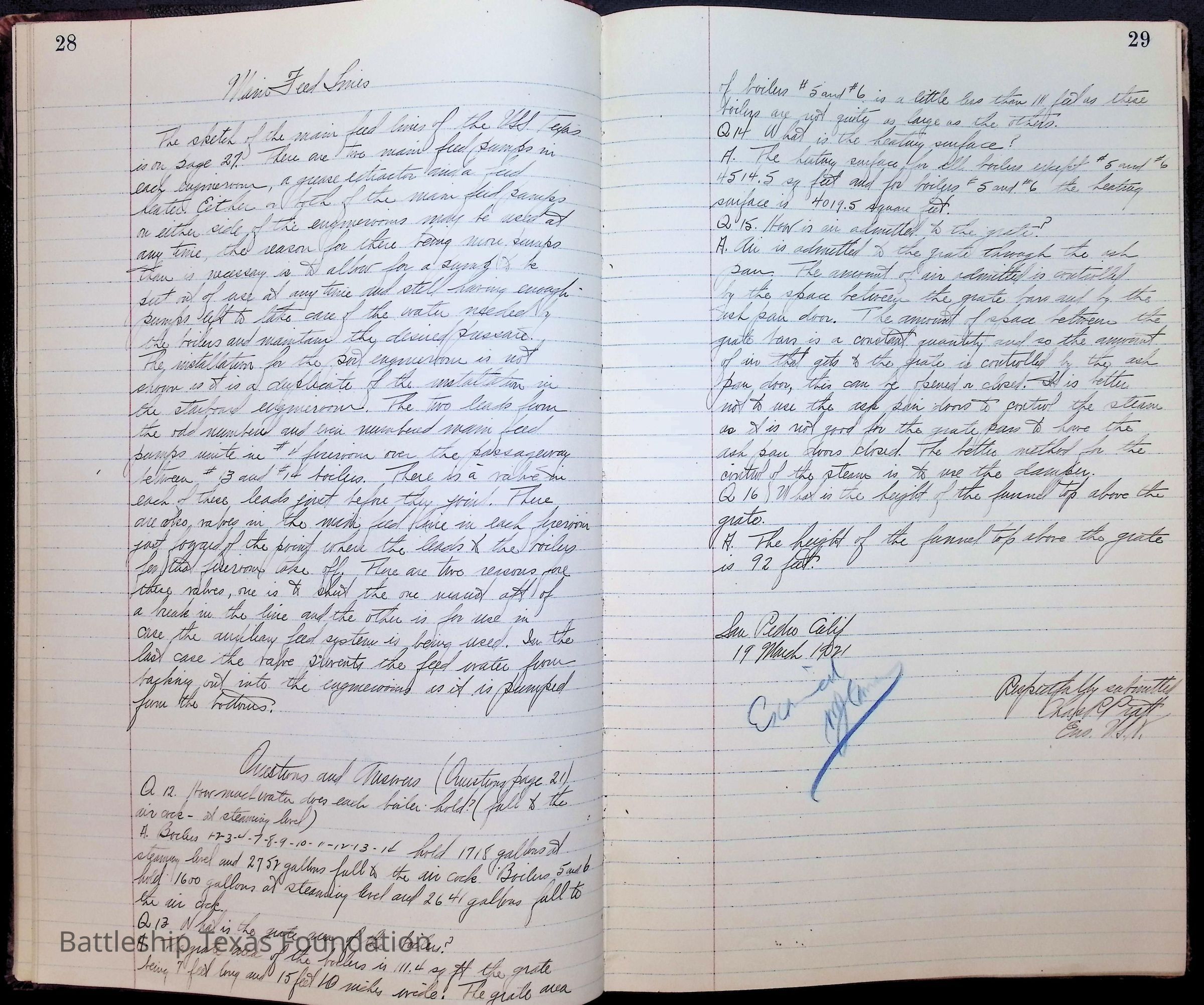 Pages 1-41: notes and writings on engineering spaces on Battleship Texas