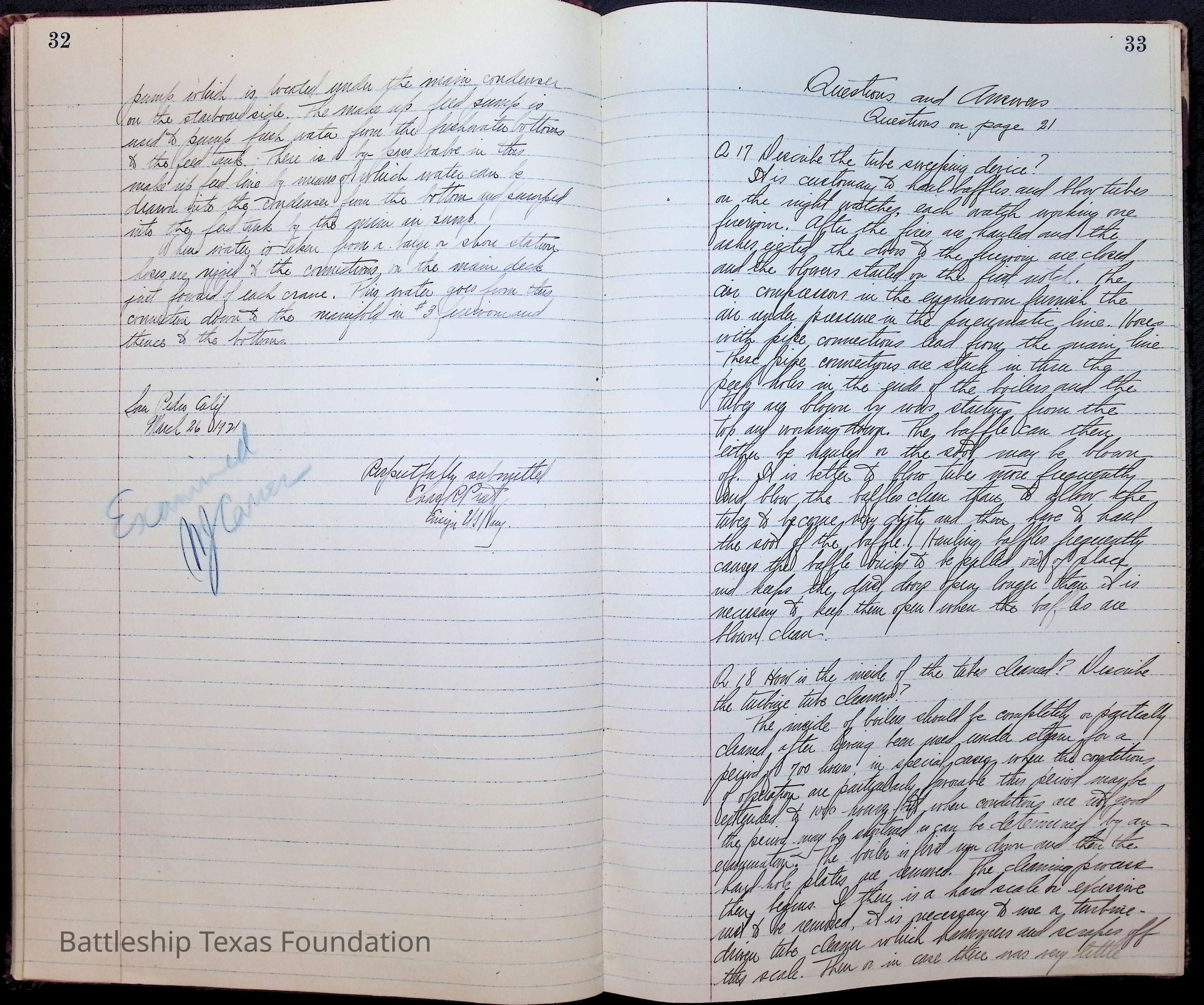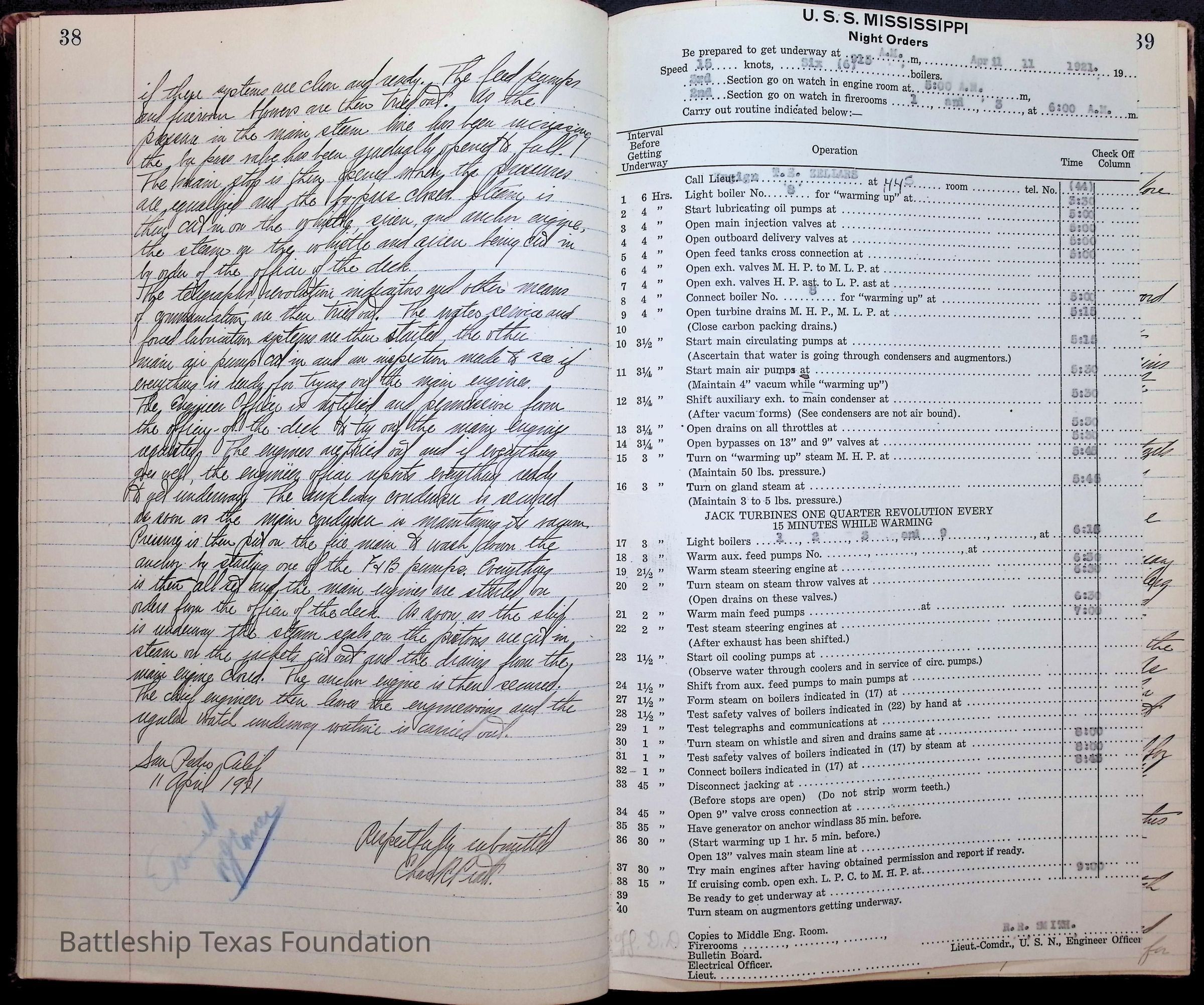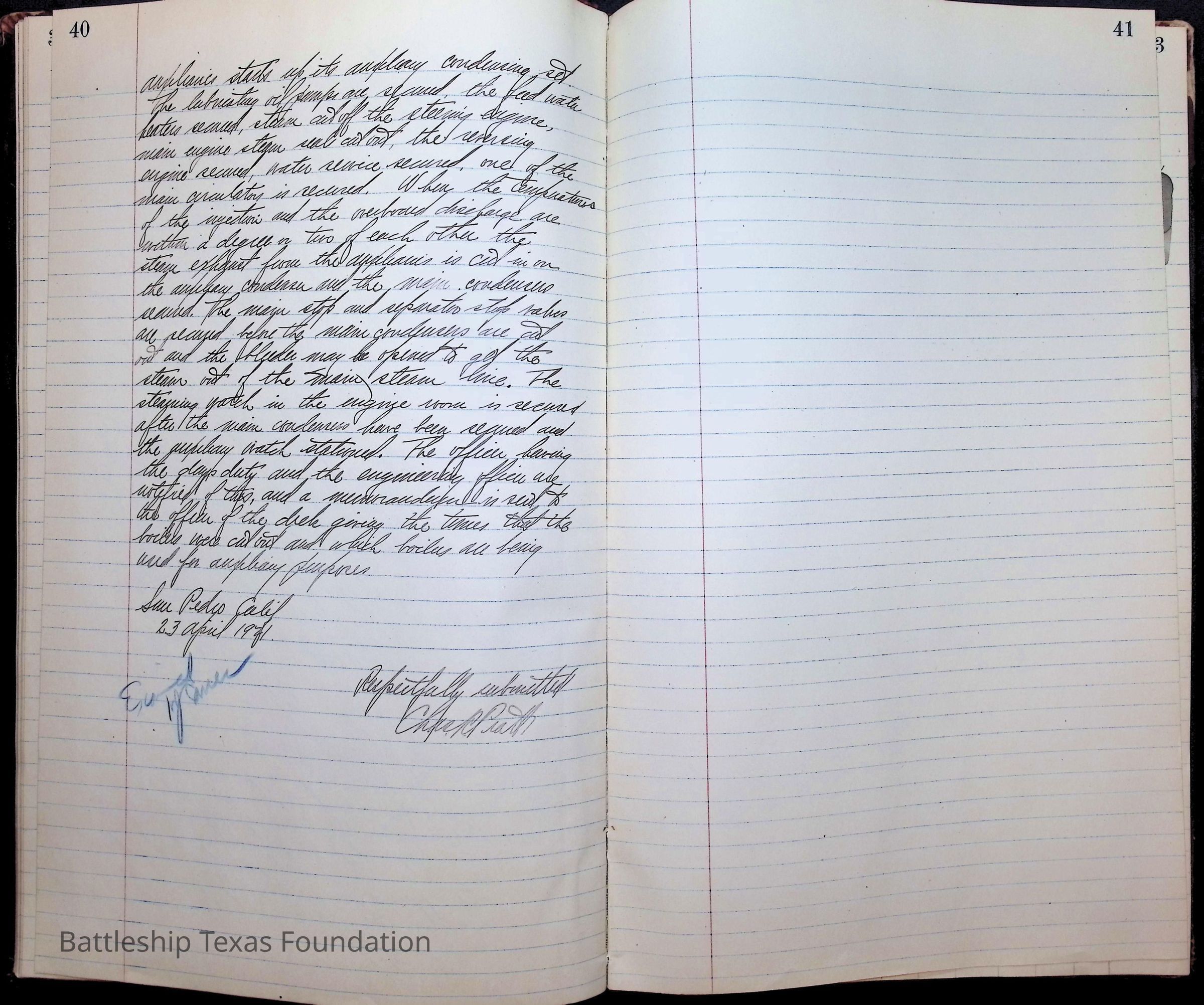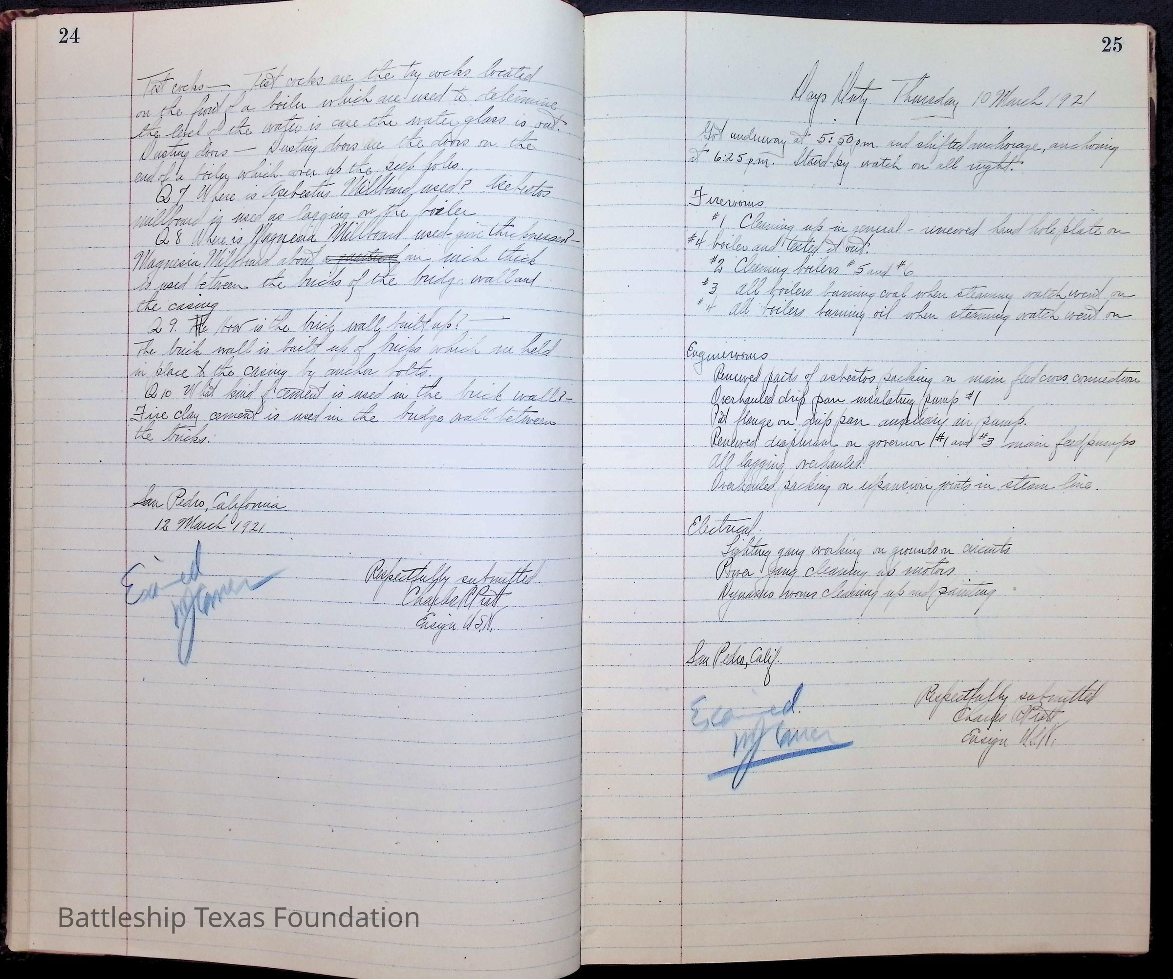Pages 1-41: notes and writings on engineering spaces on Battleship Texas