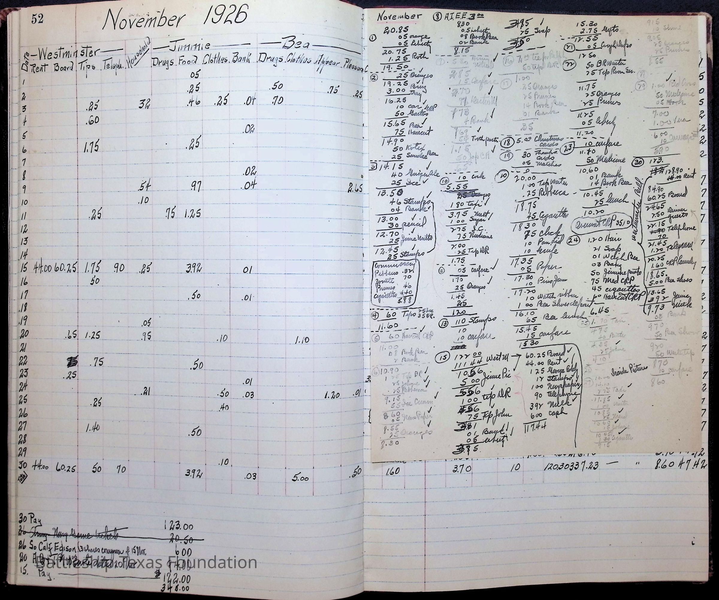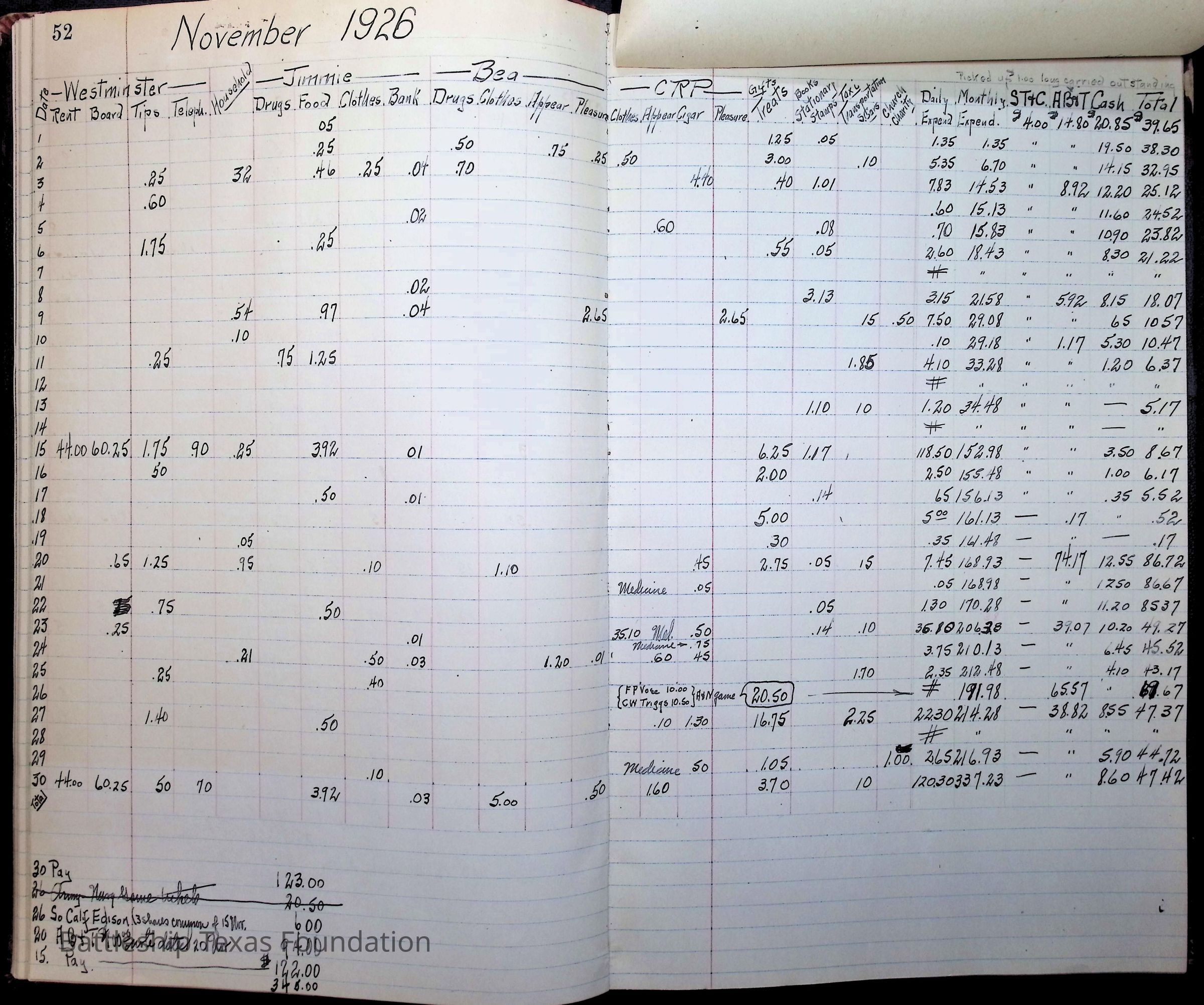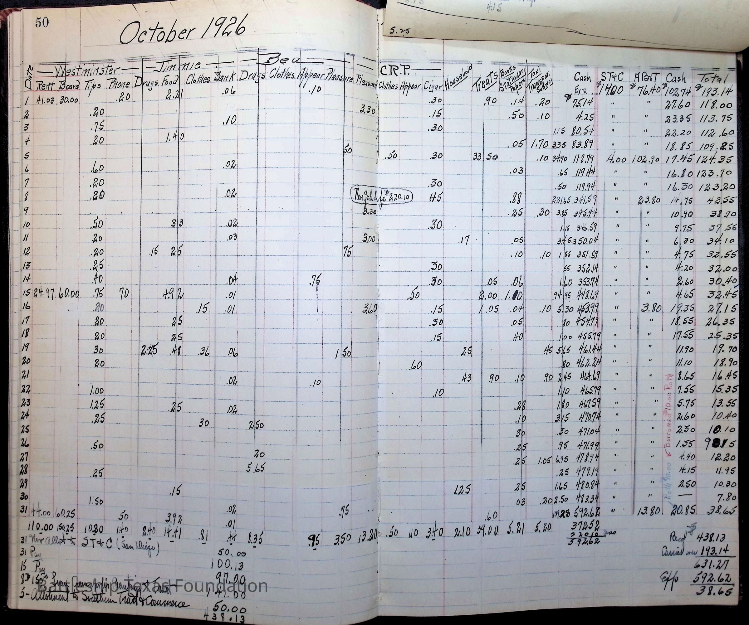 Pages 50-53: 1926 family financial accounts