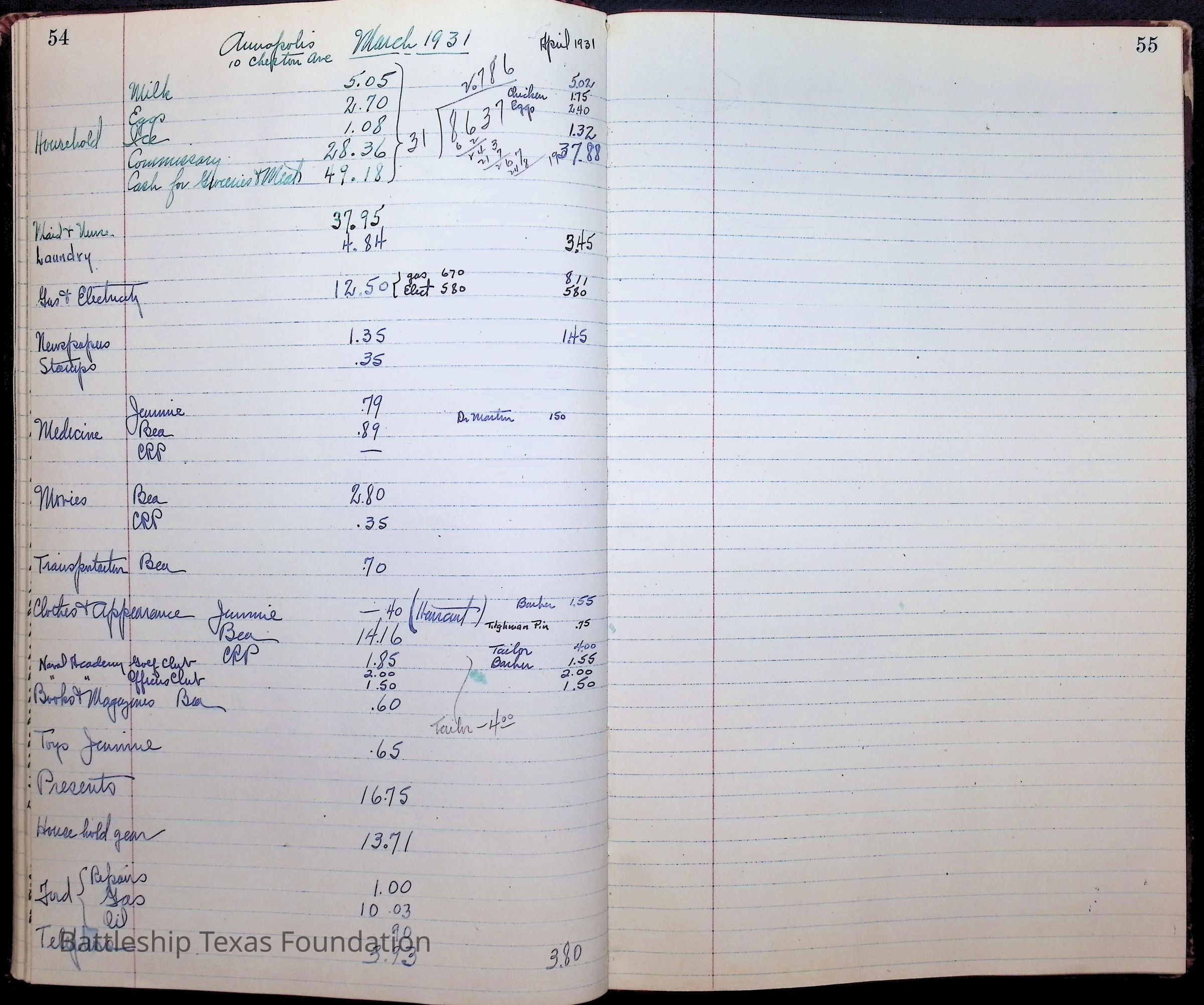 Page 54: 1931 family financial accounts