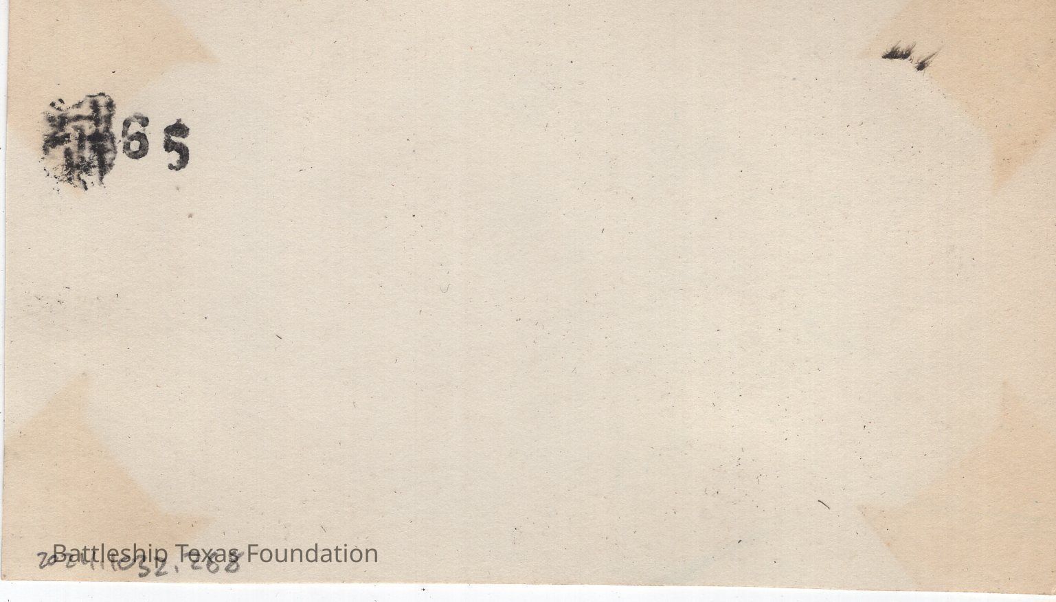 From a donated collection of individual photographs and pages out of a Texas crewmember's photo album. Items donated by the Los Angeles Maritime Museum.