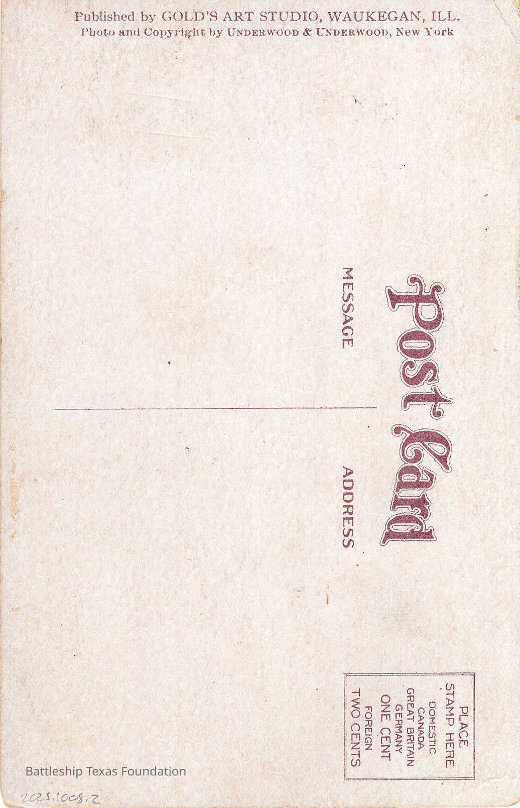 Some postcards of Battleship Texas featured artwork, rather than a photograph.Collection