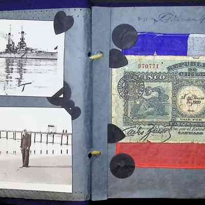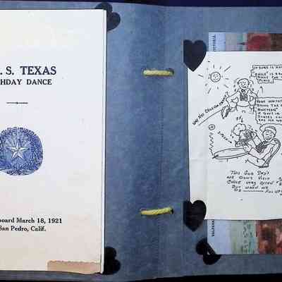 Lawrence Gaddis collected many souvenirs during his travels around North and South America, as well as from events held on the ship or by the crew, and articles mentioning Battleship Texas in the papers.