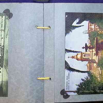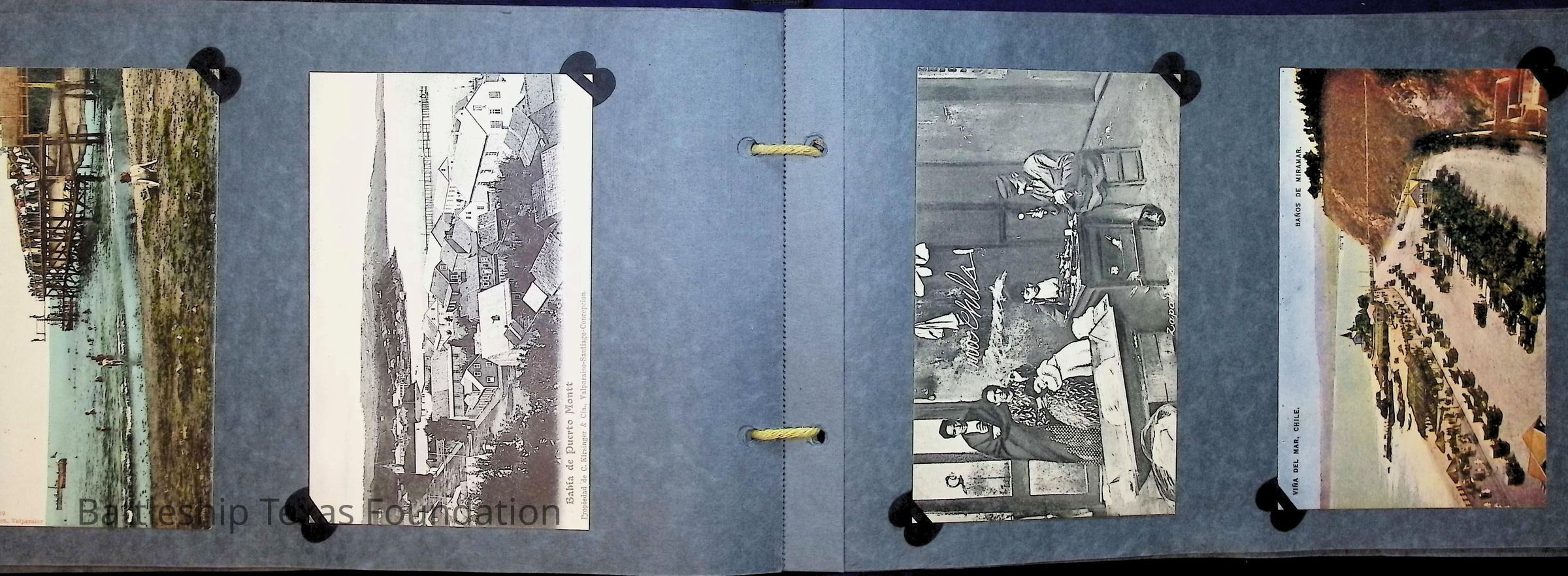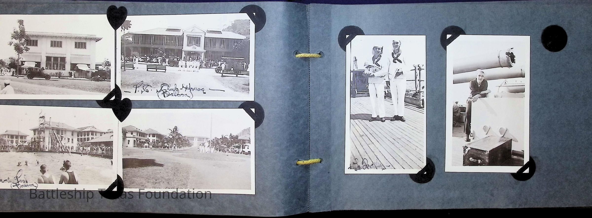 Third of Gaddis's four photo albums. Blue cover with yellow felt Battleship and lettering spelling USN. Gaddis wrote "L.J.G." and "Texas" on the bow of the ship.Context