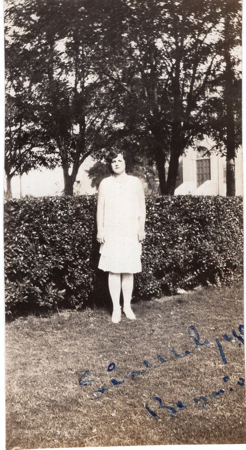 From a donated collection of individual photographs and pages out of a Texas crewmember's photo album. Items donated by the Los Angeles Maritime Museum. Many photographs had writing on the pages of the book, now discarded. The caption formerly on the page for this photo read, "BENNIE STANDFIELD"
