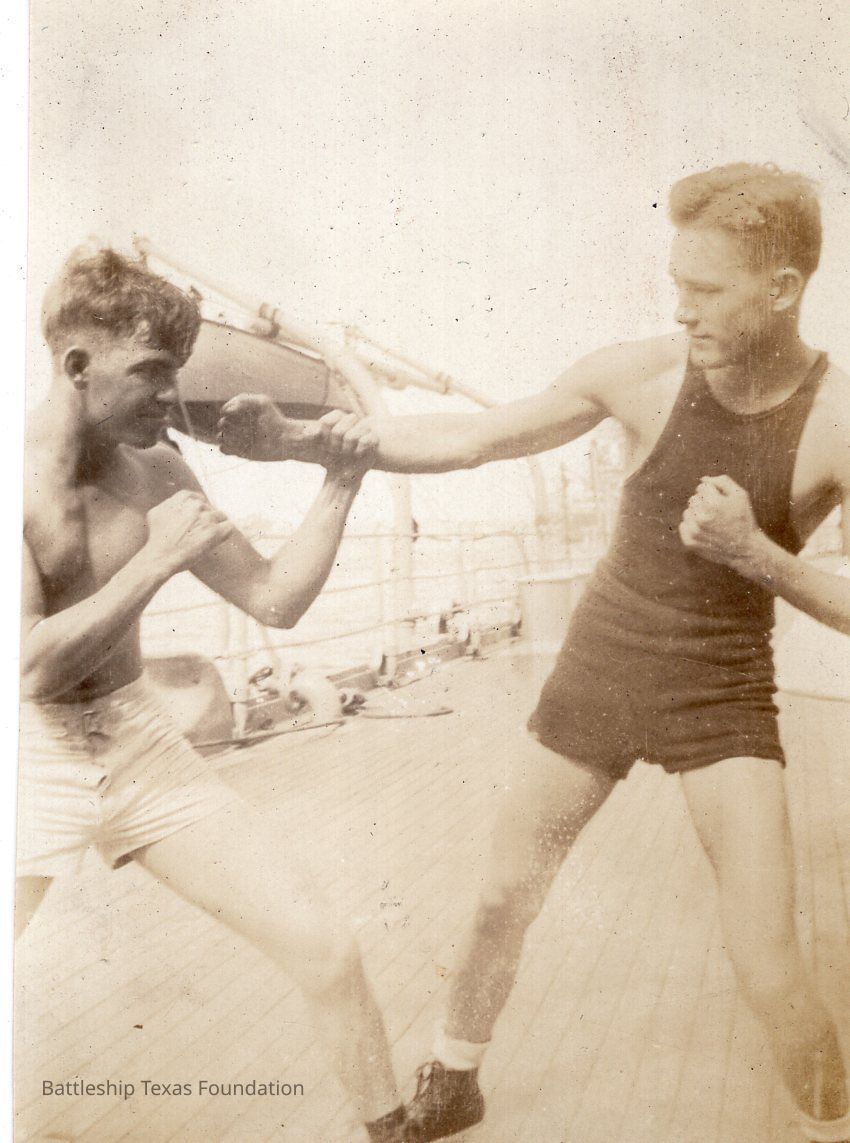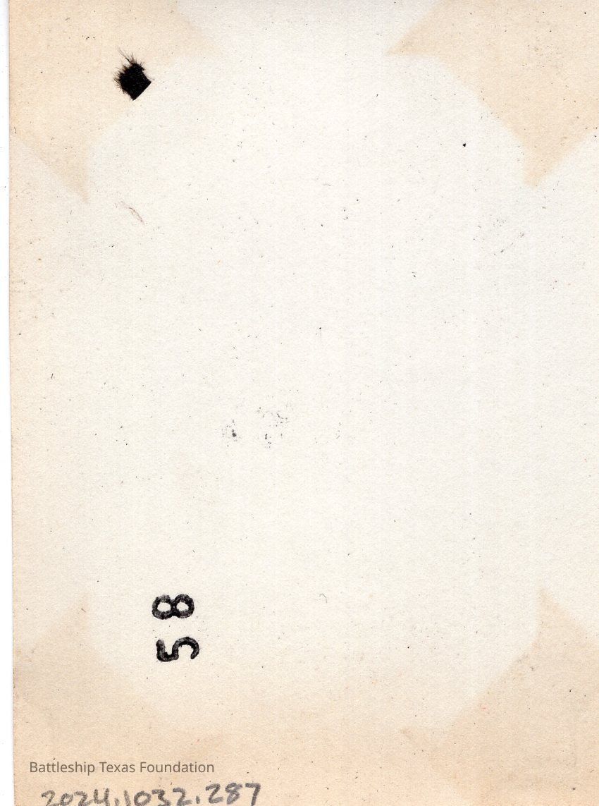 From a donated collection of individual photographs and pages out of a Texas crewmember's photo album. Items donated by the Los Angeles Maritime Museum.