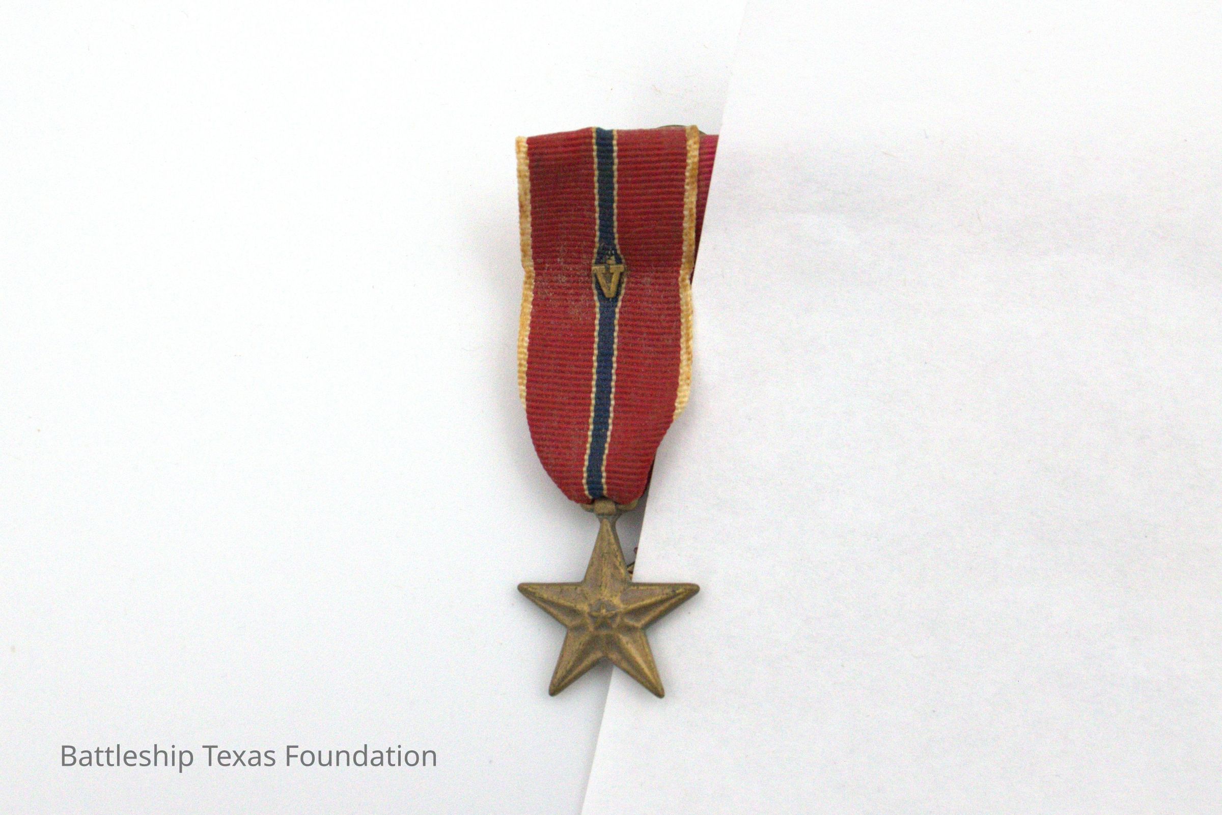 The Bronze Star Medal was awarded for heroic achievements or service, and meritorious achievements or service. The medal was made via an executive order by FDR on February 4, 1944, and awarded retroactively beginning on December 7, 1941. Bronze Star Medals with a “V” on the ribbon denote meritorious combat service during the Vietnam War.Collection
