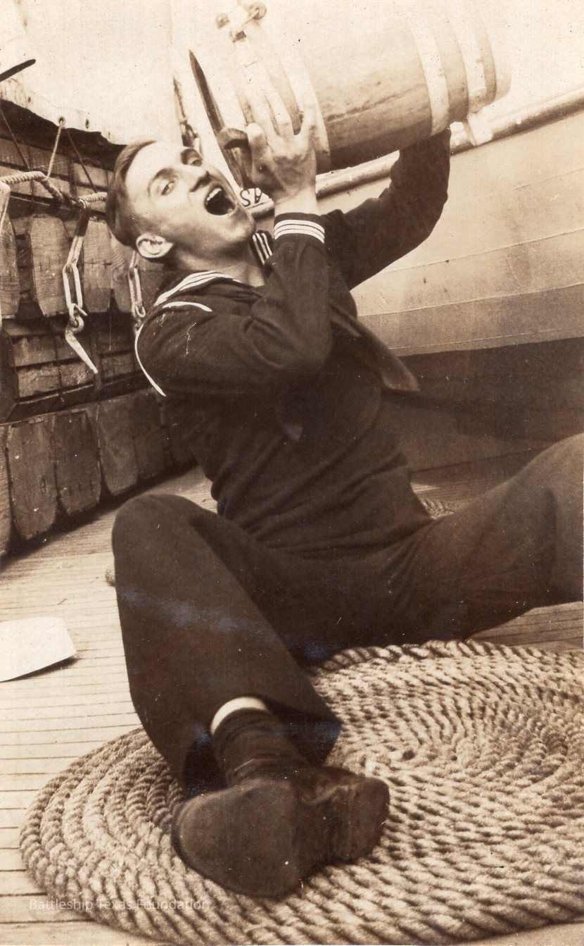 From a donated collection of individual photographs and pages out of a 1930s Texas crewmember's photo album. Items donated by the Los Angeles Maritime Museum. Many photographs had writing on the pages of the book, now discarded. The caption formerly on the page for this photo read,