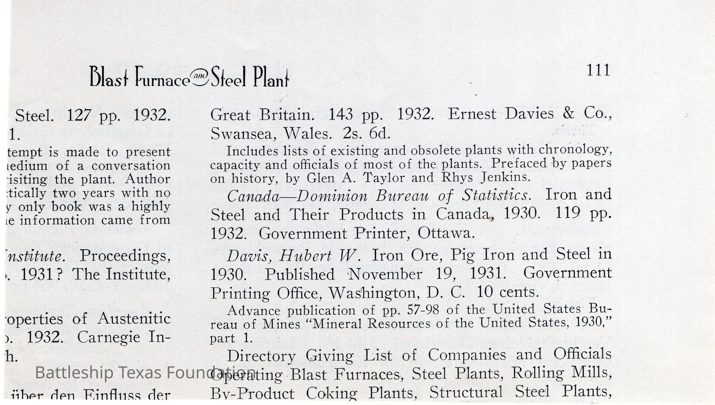 Clipping from Blast Furnace and Steel Plant sent to W.F. Rayl from the USS Texas.Context