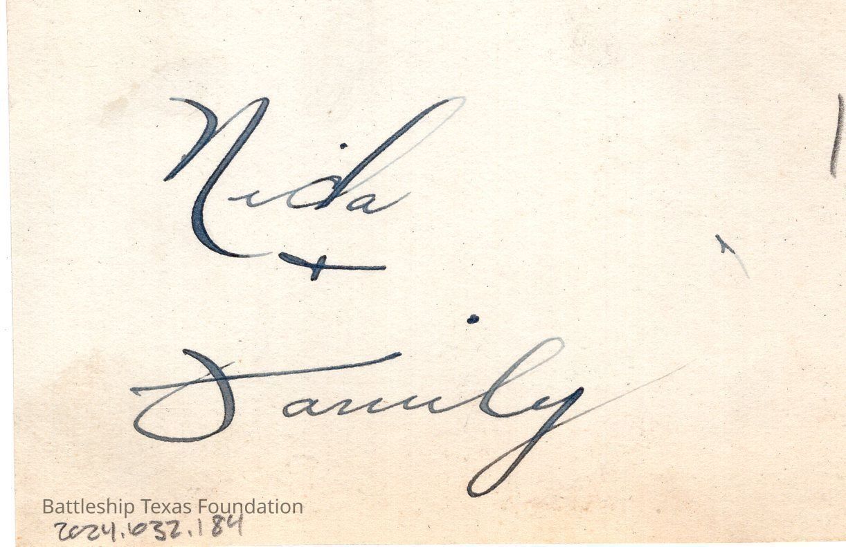 From a donated collection of individual photographs and pages out of a Texas crewmember's photo album. Items donated by the Los Angeles Maritime Museum.