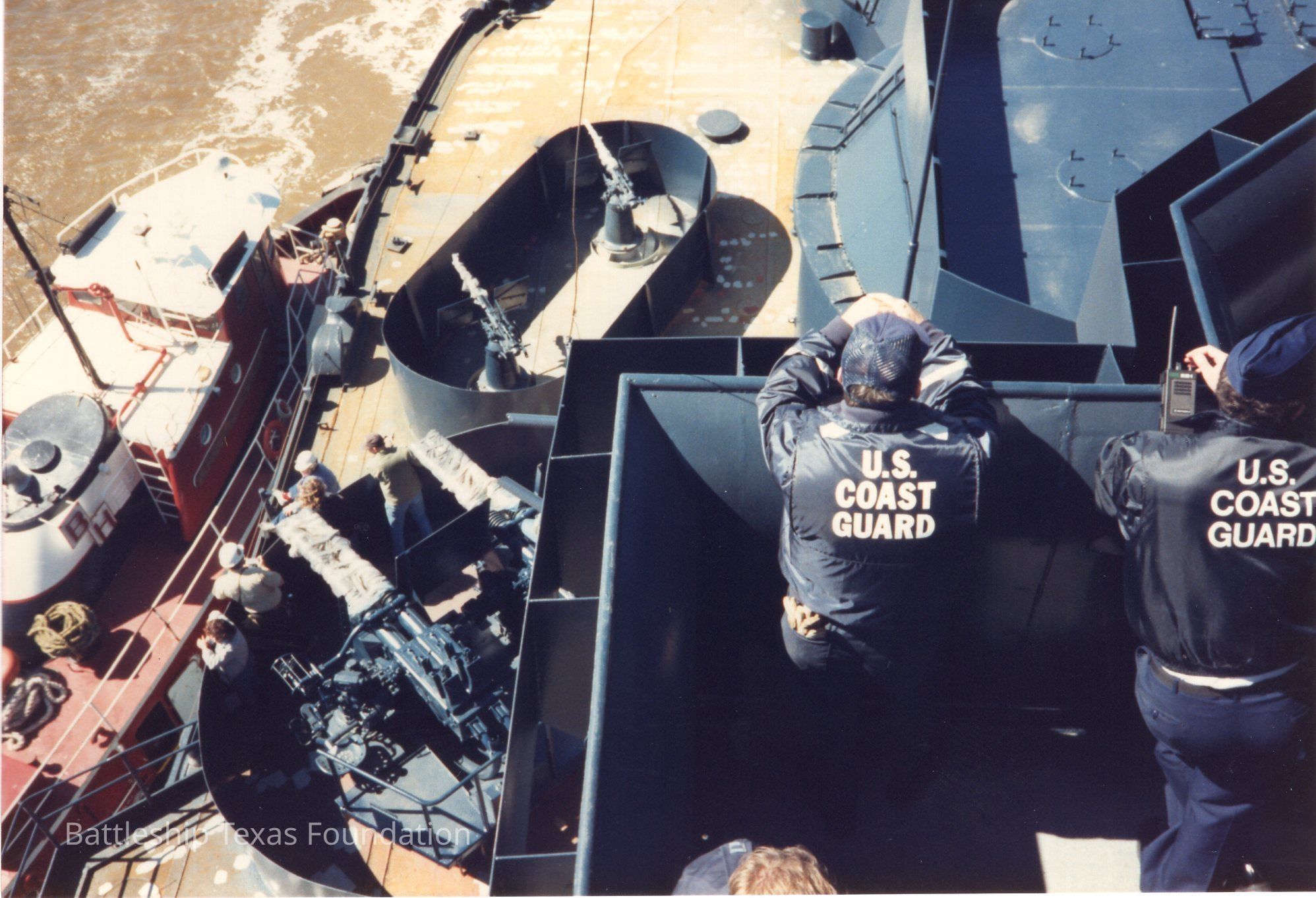 Battleship Texas departed San Jacinto State Park for Todd Shipyard in Galveston where she had hull work in dry dock from December 13, 1988, to August 6, 1989, and then put back in water for additional work through February 23, 1990. She was moved to Greens Bayou for decking and monopile instillation and returned to San Jacinto Battleground on July 28, 1990. The Battleship Texas Museum was operated by the Texas Parks and Wildlife Department from 1983 to 2020.