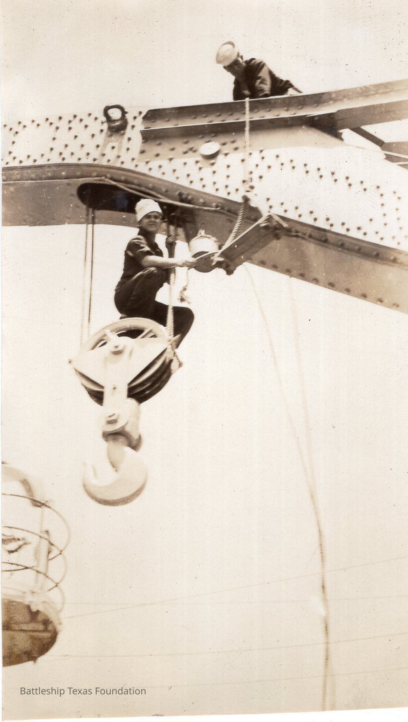From a donated collection of individual photographs and pages out of a Texas crewmember's photo album. Items donated by the Los Angeles Maritime Museum.