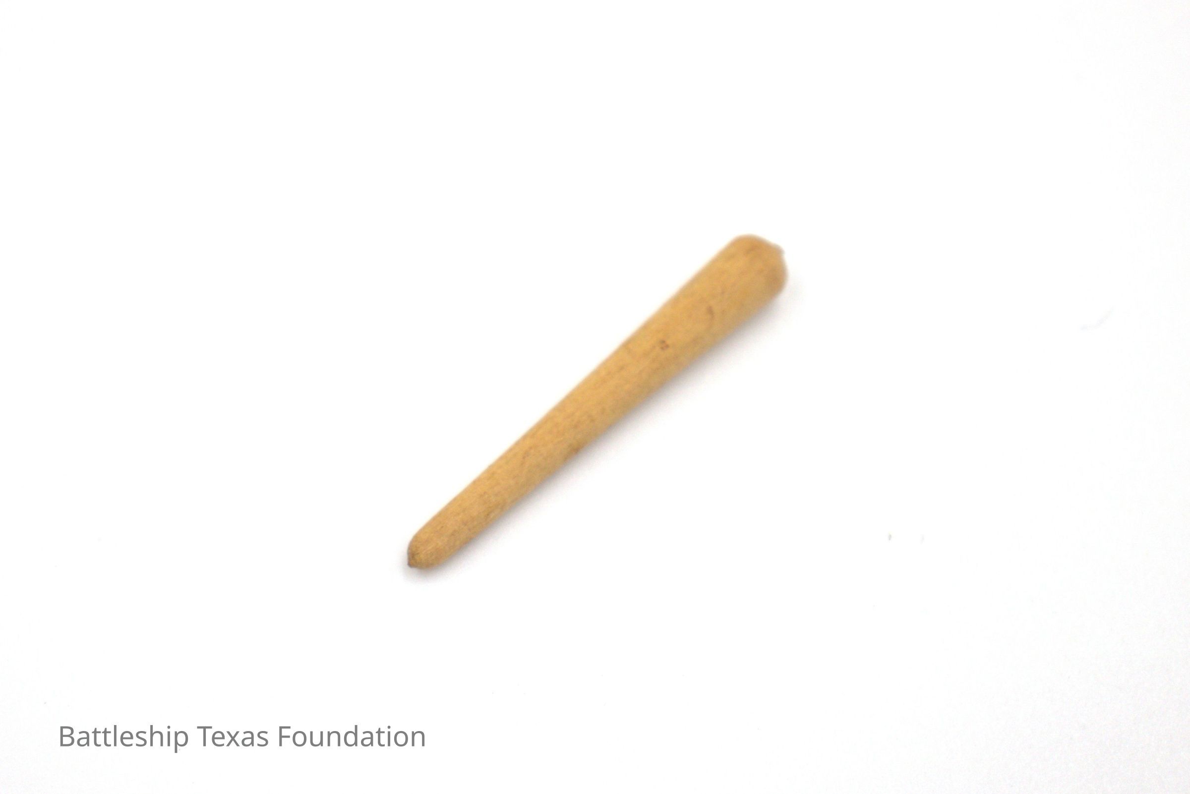Small wooden peg used in a cribbage game owned by Charles Pratt. Only nine pieces remain from the original set.Context