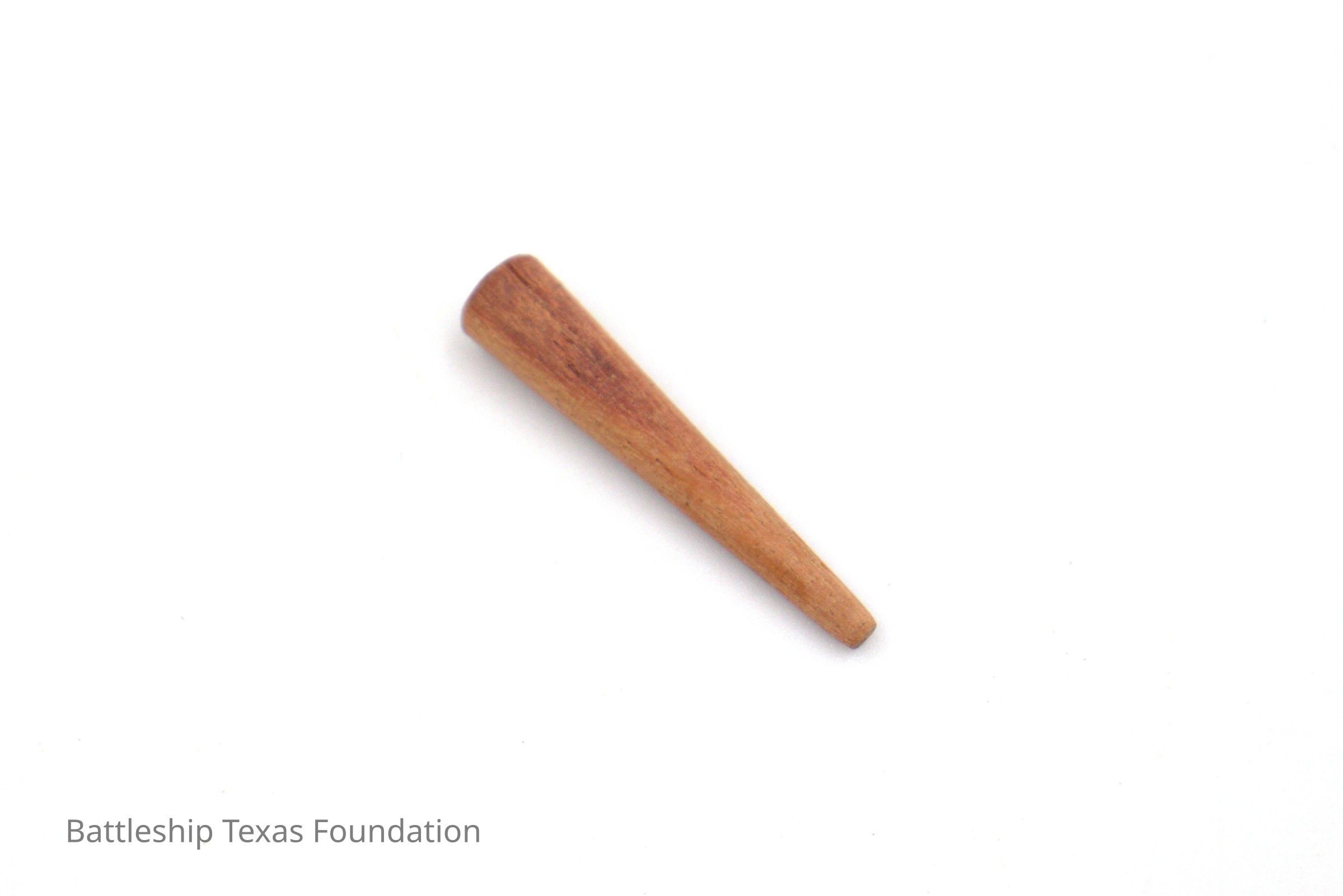 Small wooden peg used in a cribbage game owned by Charles Pratt. Only nine pieces remain from the original set.Context