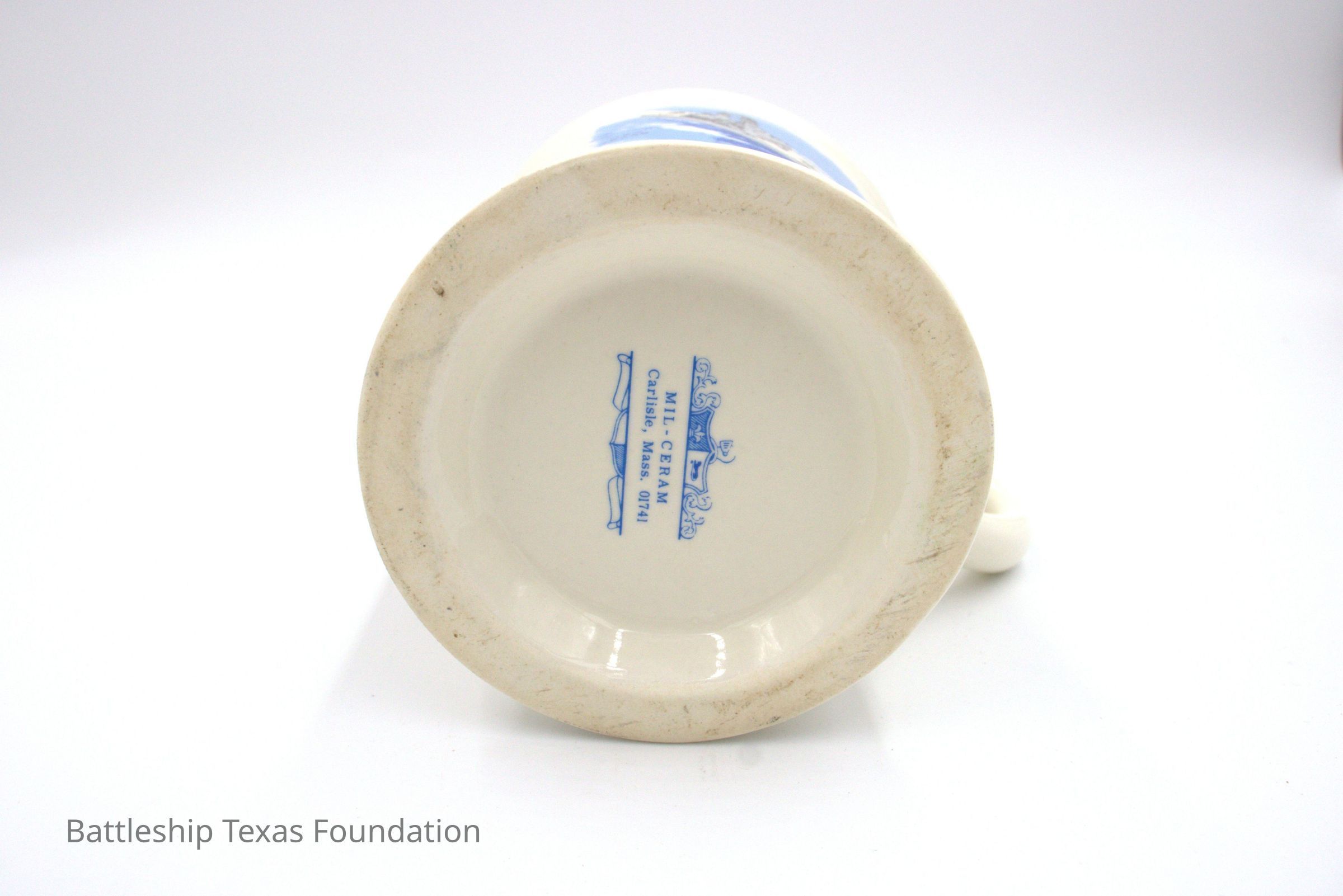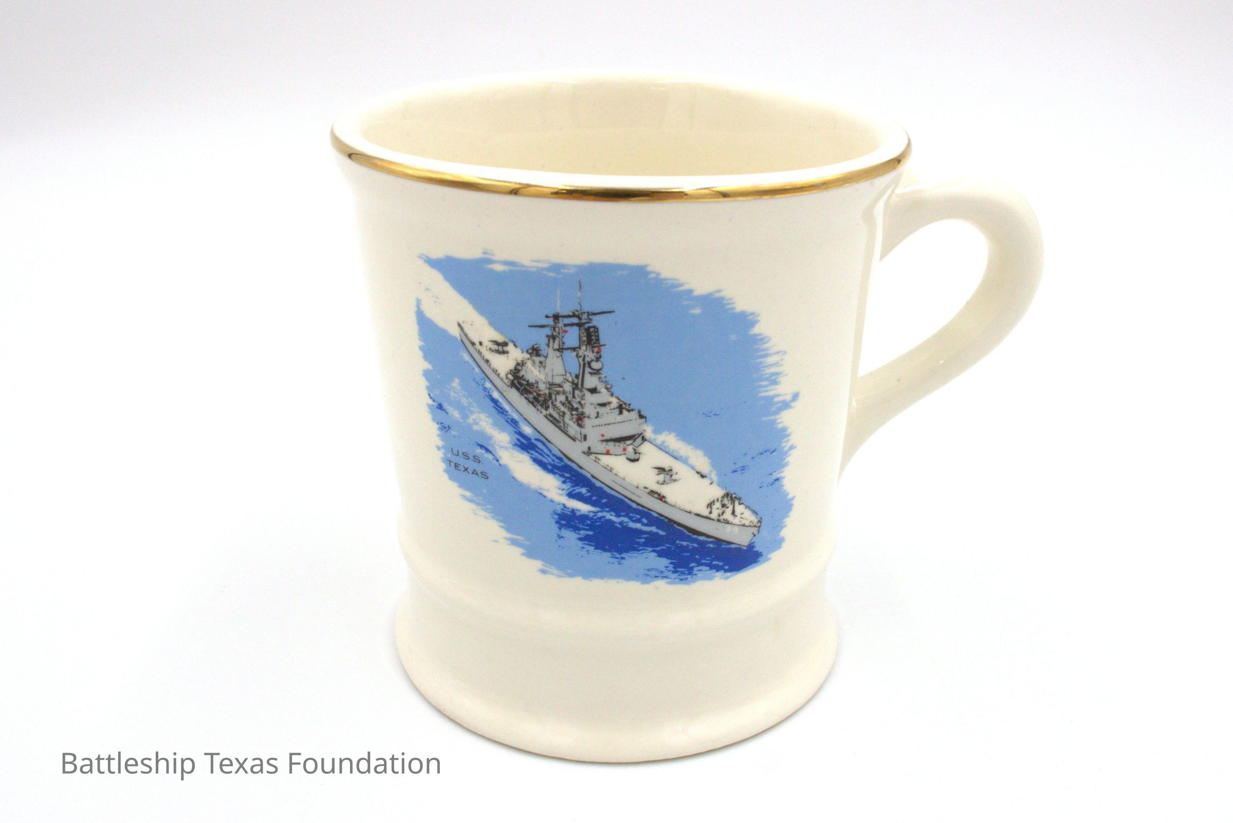 Mug used by crewmember of USS Texas (CGN-39) and features an artistic impression of the cruiser on one side of the mug.Context