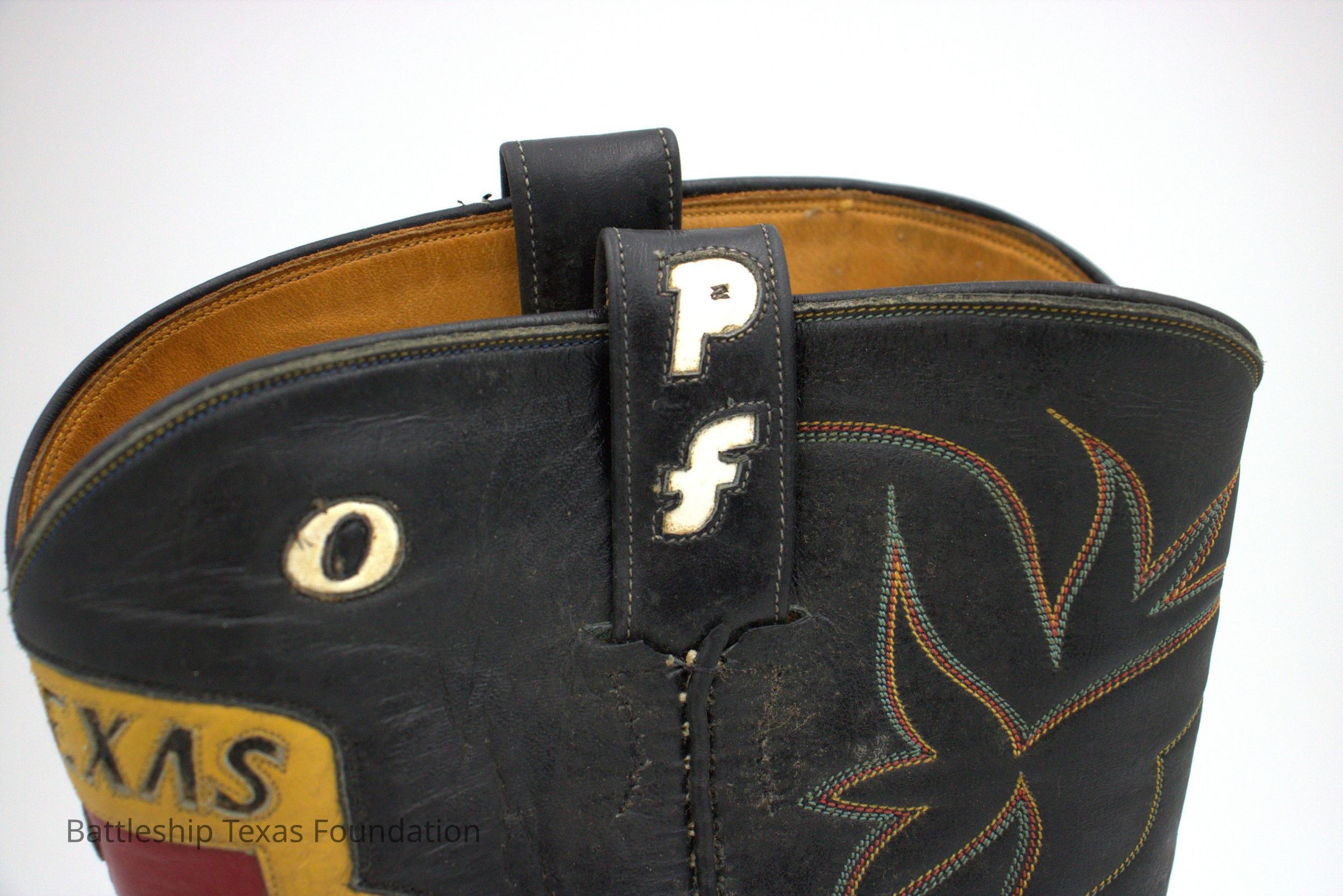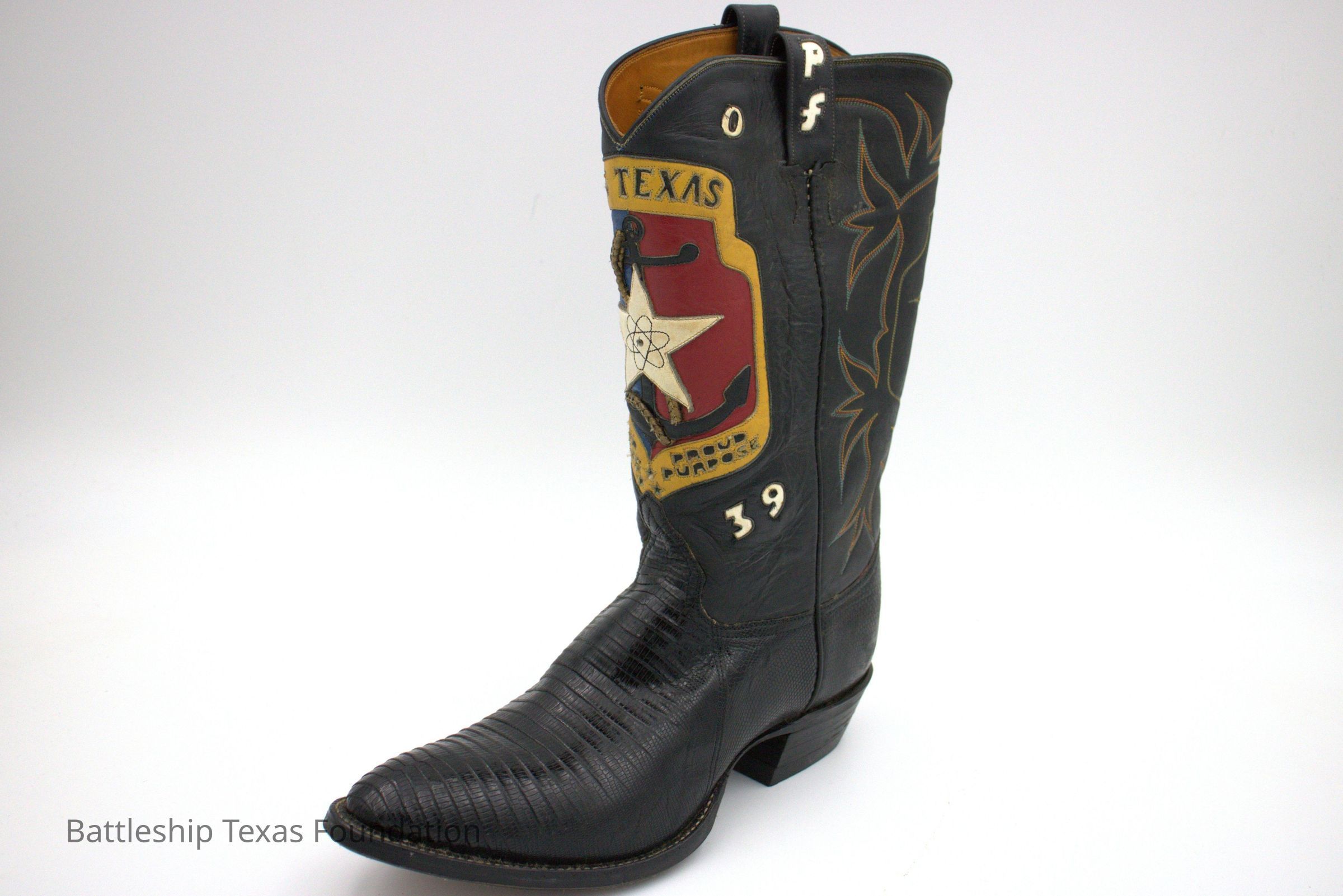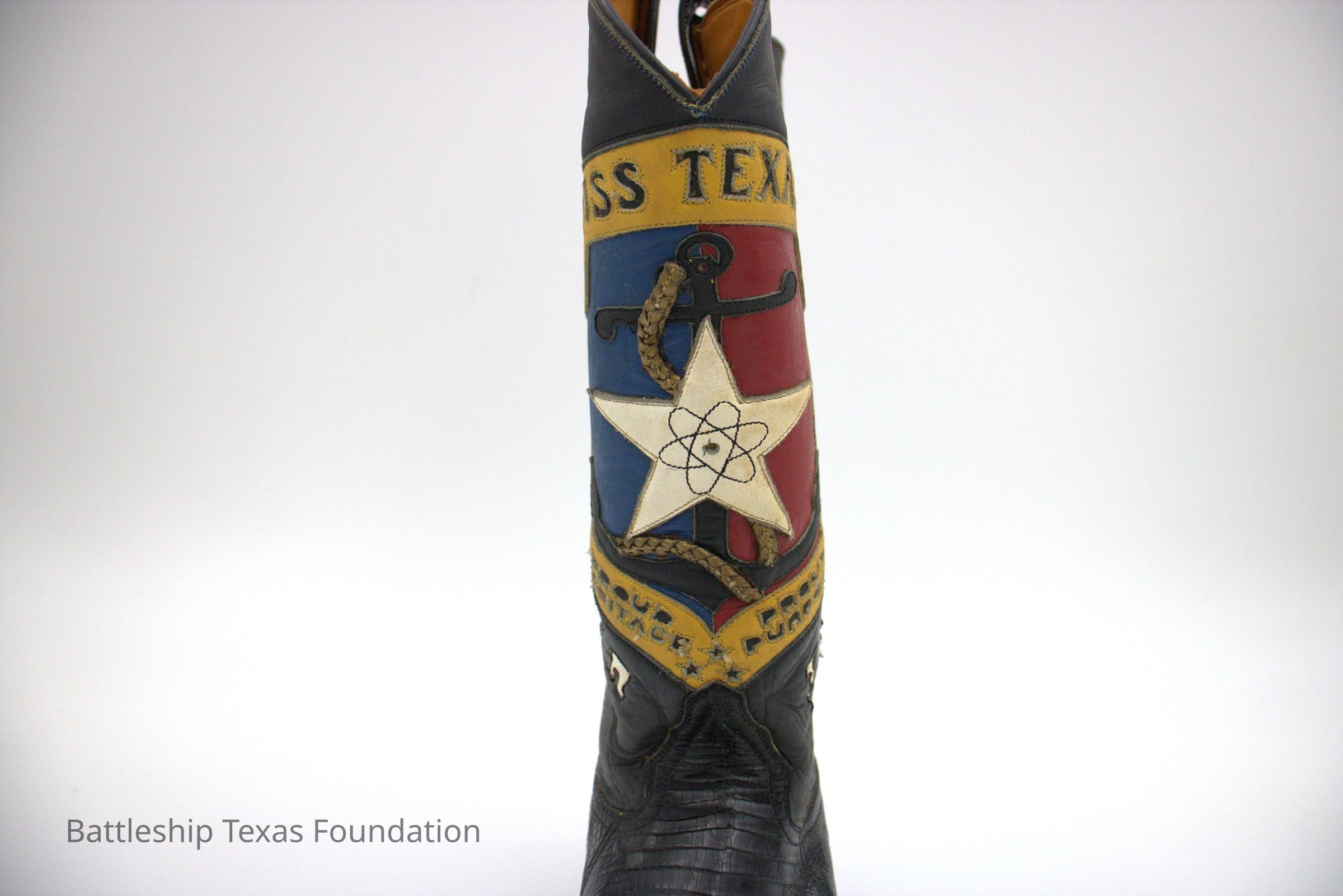 One of a pair of custom boots bought by Peter Fiedler and decorated fro Cruiser Texas. The boots were worn at commissioning.Context