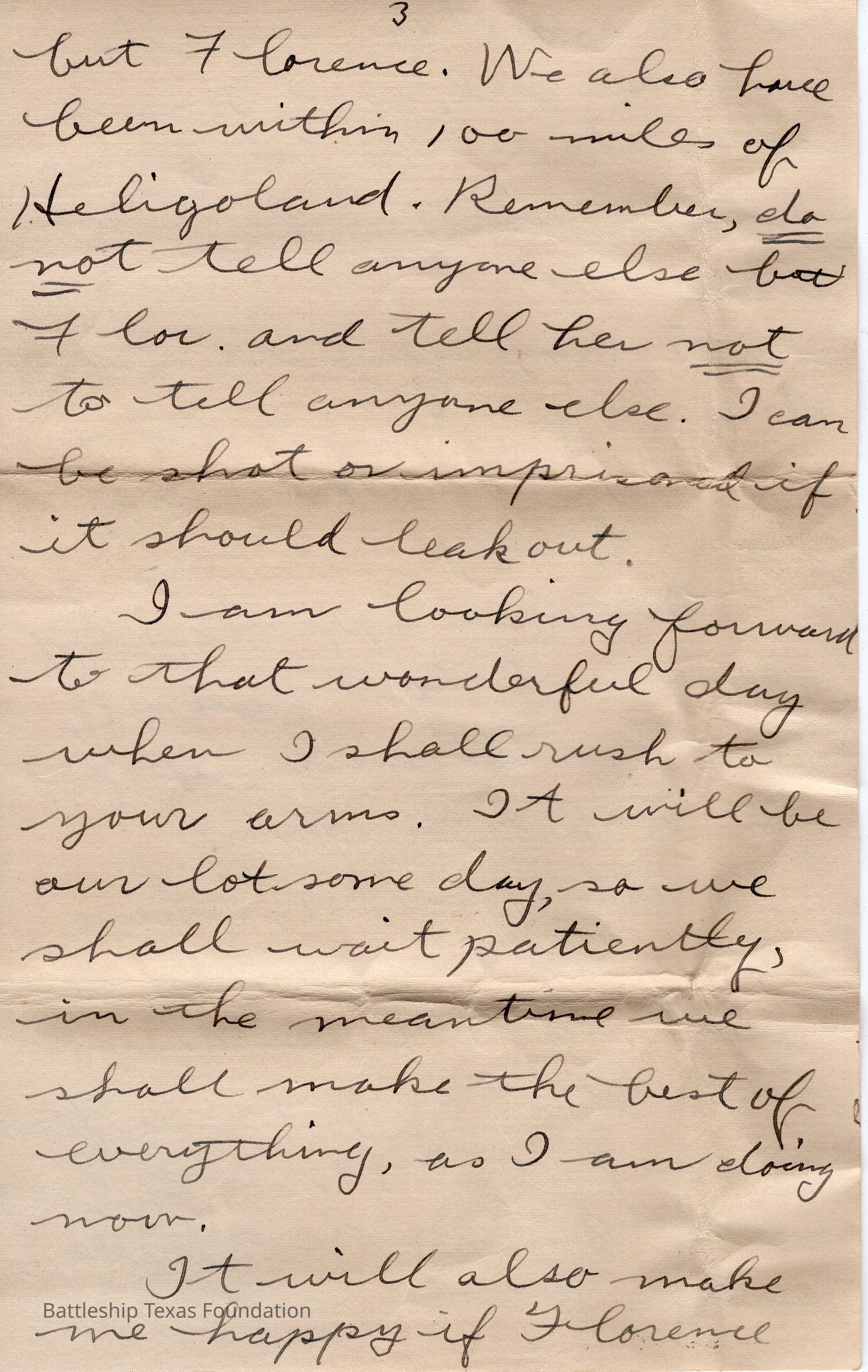 John Lamson was a MM1c on Battleship Texas from May 1917 to June 1919. Throughout his time on Texas, he sent a letter to his family at least once a week, often more. Longer stretches of absence are explained either by movement across the Atlantic, or with the Grand Fleet.
