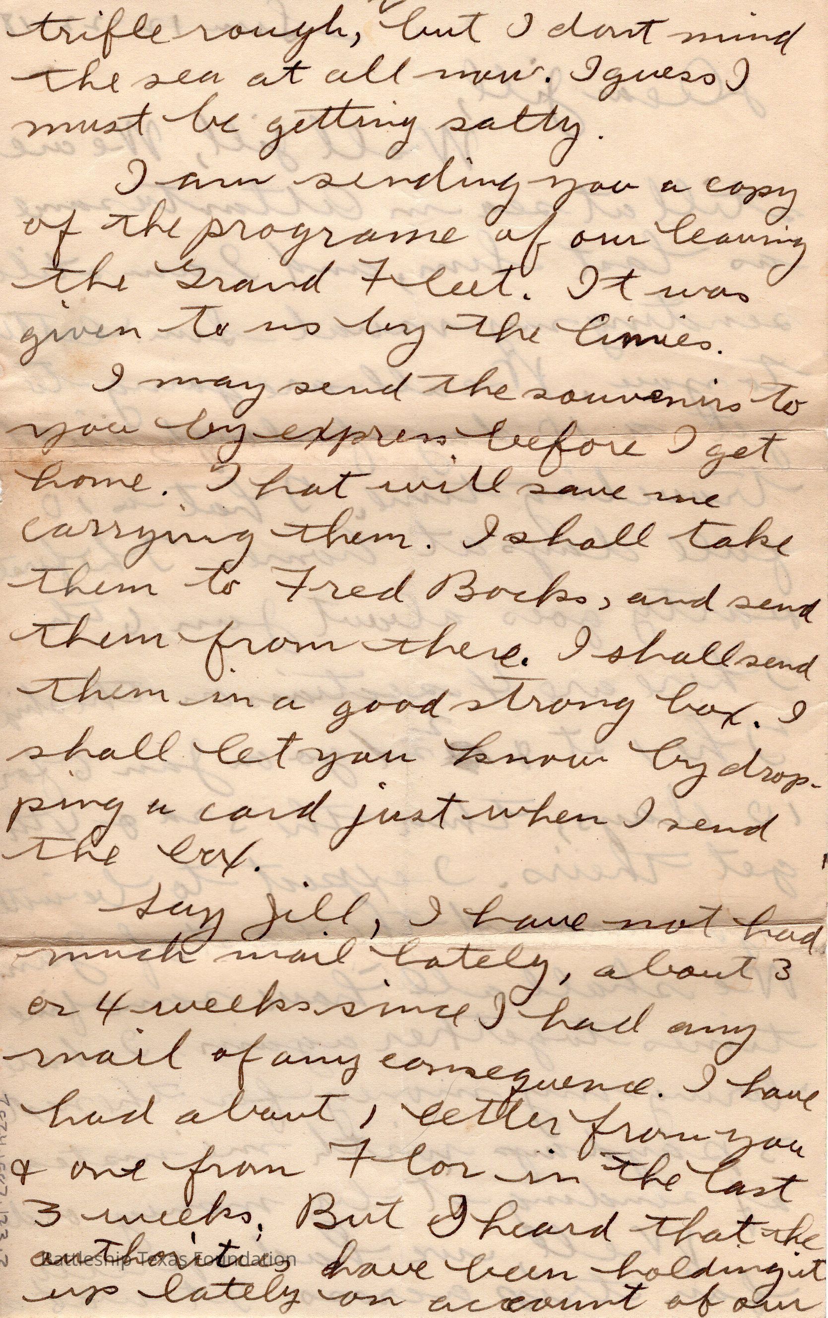John Lamson was a MM1c on Battleship Texas from May 1917 to June 1919. Throughout his time on Texas, he sent a letter to his family at least once a week, often more. Longer stretches of absence are explained either by movement across the Atlantic, or with the Grand Fleet.Collection