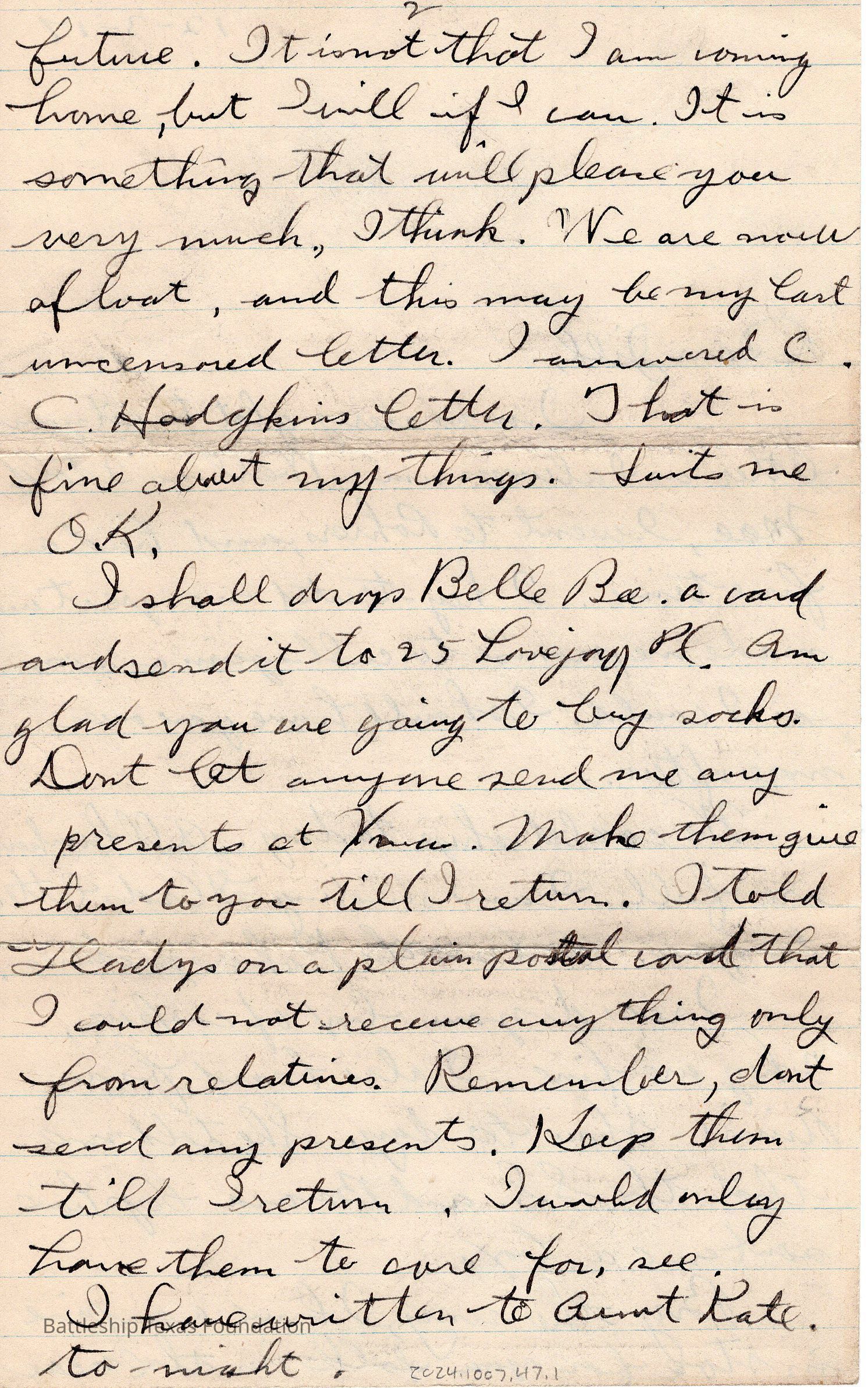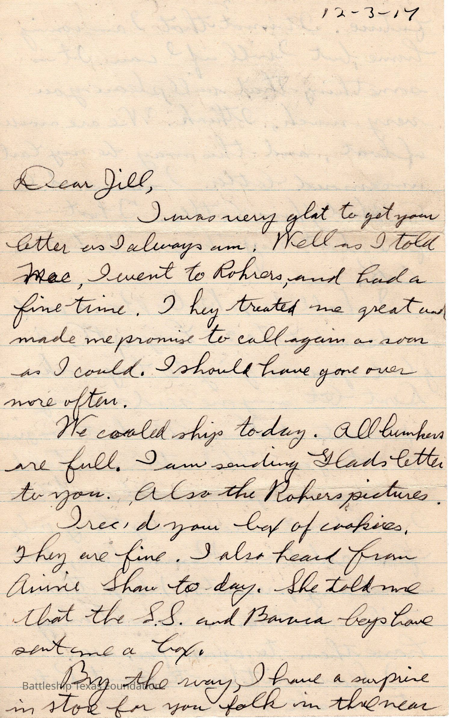 John Lamson was a MM1c on Battleship Texas from May 1917 to June 1919. Throughout his time on Texas, he sent a letter to his family at least once a week, often more. Longer stretches of absence are explained either by movement across the Atlantic, or with the Grand Fleet.