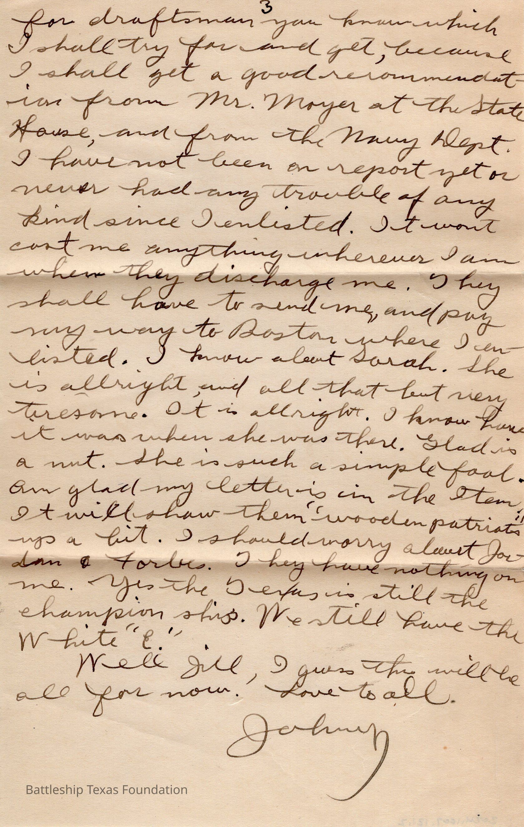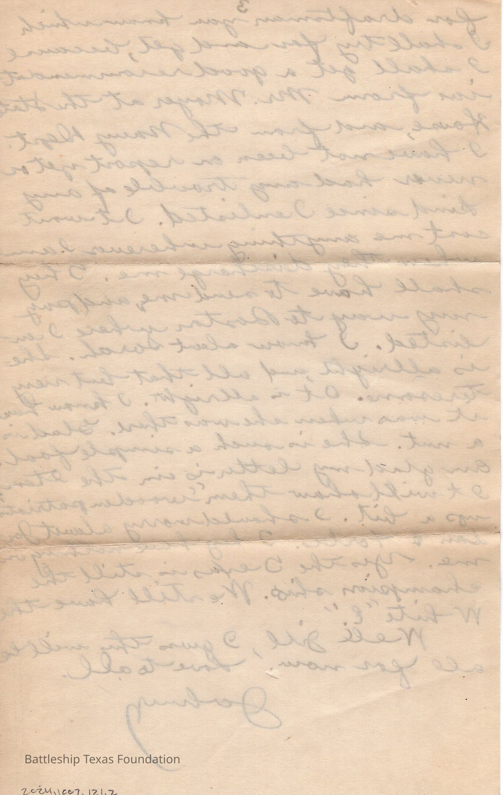 John Lamson was a MM1c on Battleship Texas from May 1917 to June 1919. Throughout his time on Texas, he sent a letter to his family at least once a week, often more. Longer stretches of absence are explained either by movement across the Atlantic, or with the Grand Fleet.