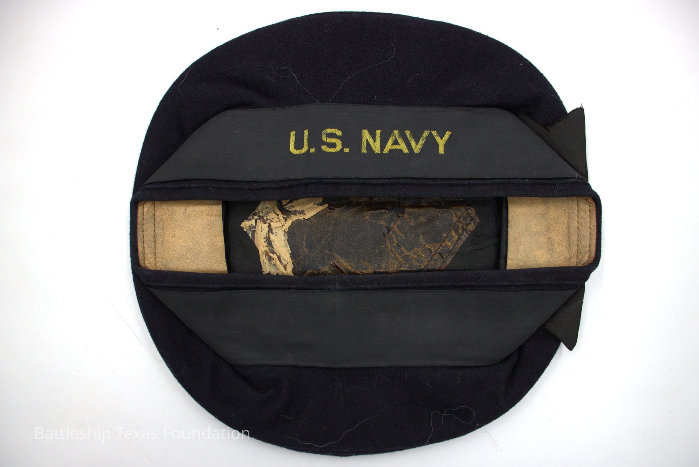 "U.S. NAVY" written on brimContext
