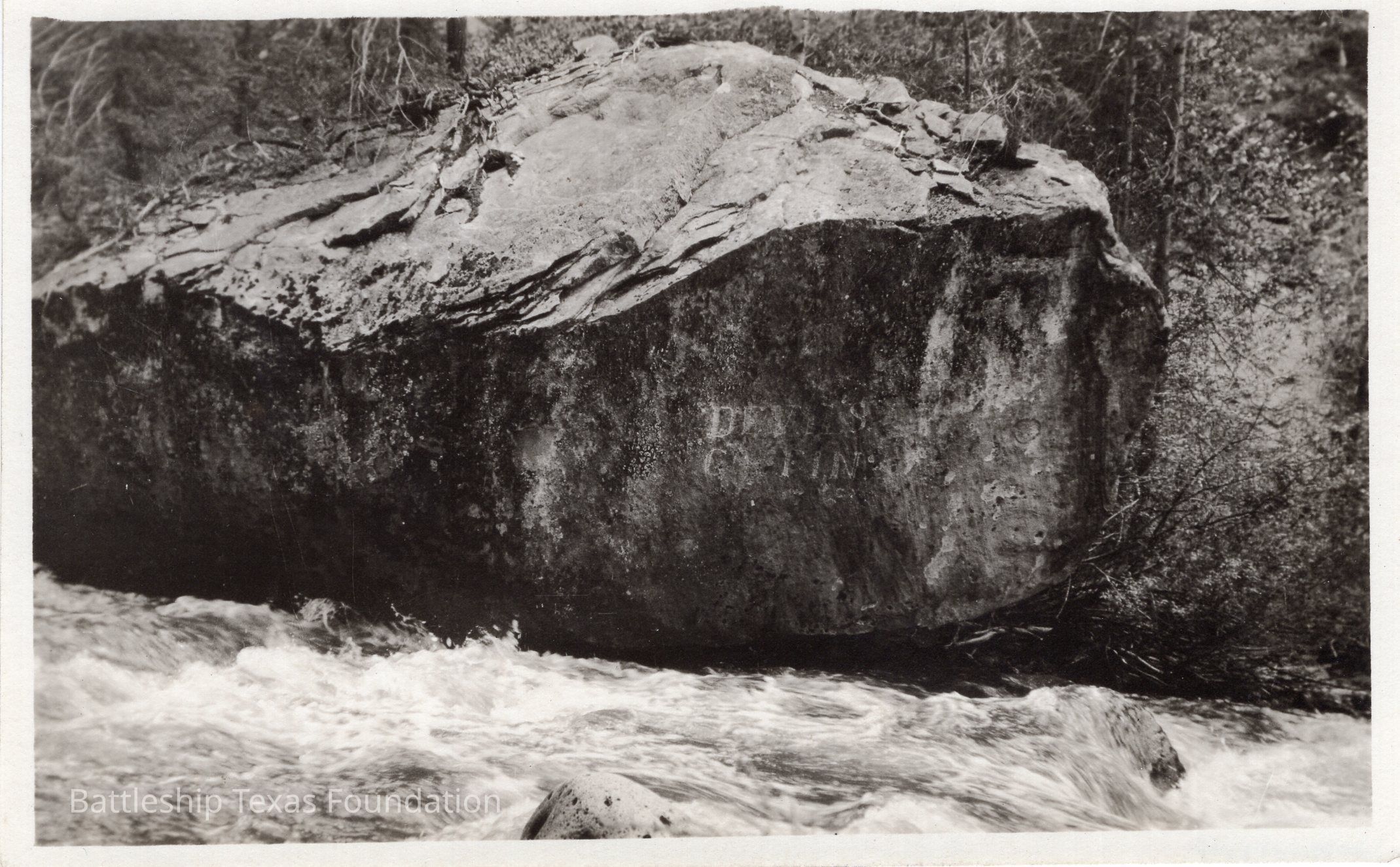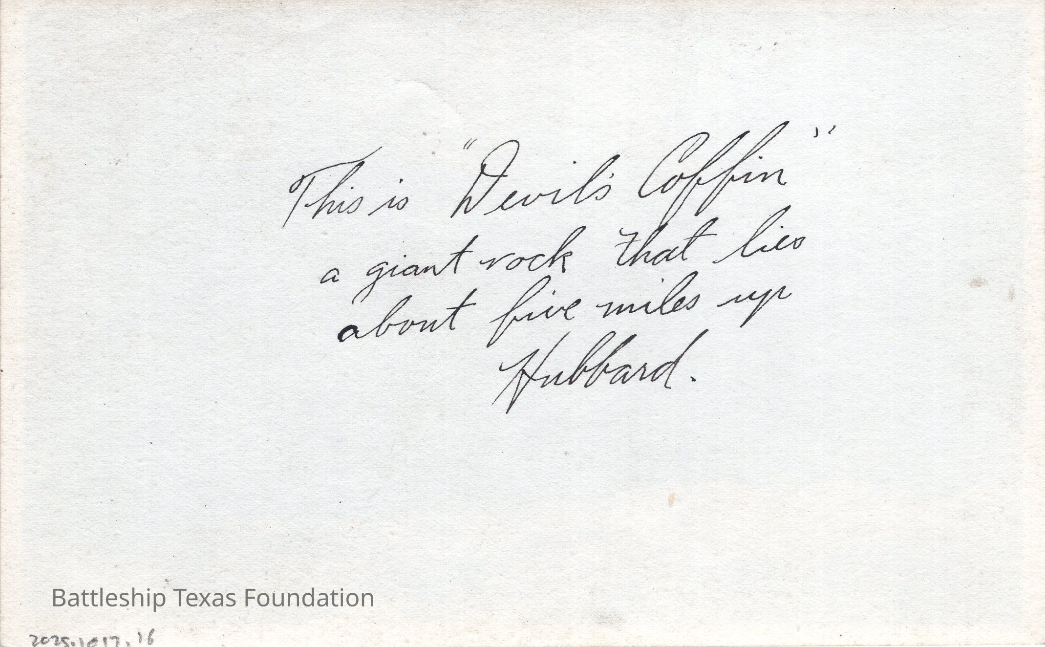 "This is 'Devil's Coffin' a giant rock that lies about five miles up Hubbard"Context