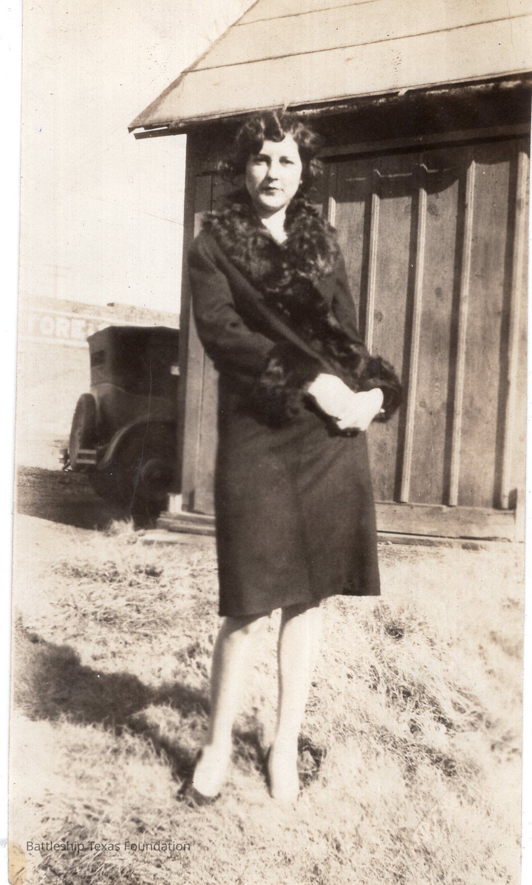 From a donated collection of individual photographs and pages out of a Texas crewmember's photo album. Items donated by the Los Angeles Maritime Museum. Many photographs had writing on the pages of the book, now discarded. The caption formerly on the page for this photo read, "Dorthey Edith"