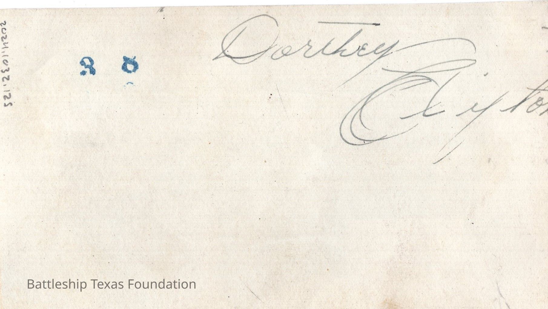 Clarence C. Clifton enlisted on August 2, 1926, and joined the crew of Battleship Texas on October 12, 1926, as a S2c. He was promoted to S1c in the summer of 1927 and remained stationed on Texas through 1930.