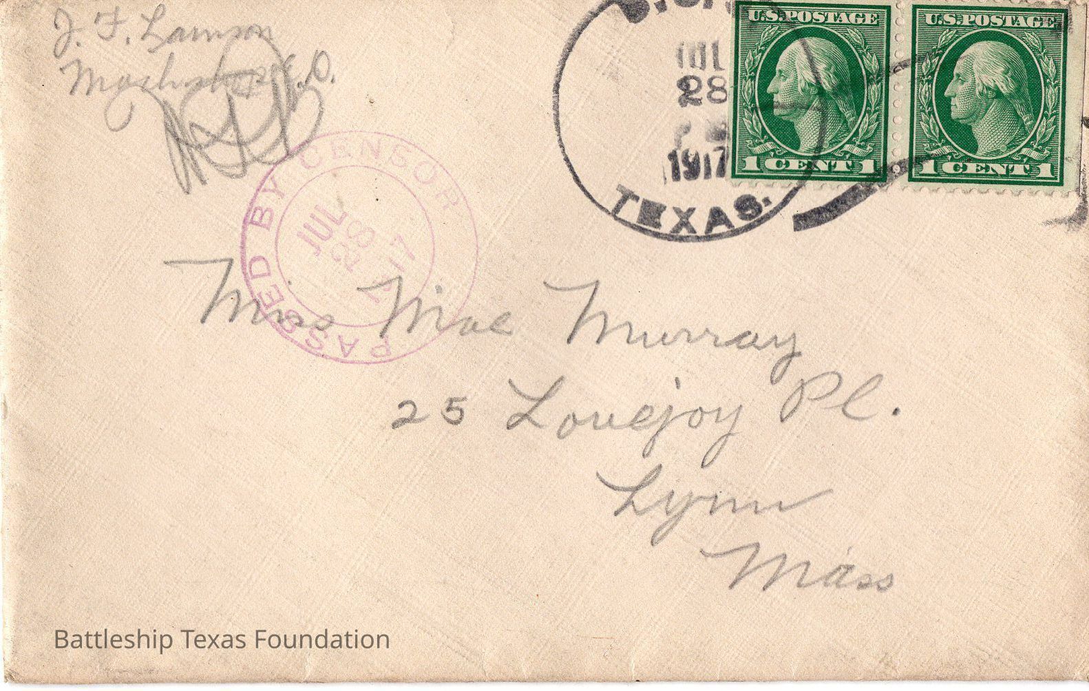 envelope addressed to Miss Mae and "PASSED BY CENSOR JUL 28 1917"Context