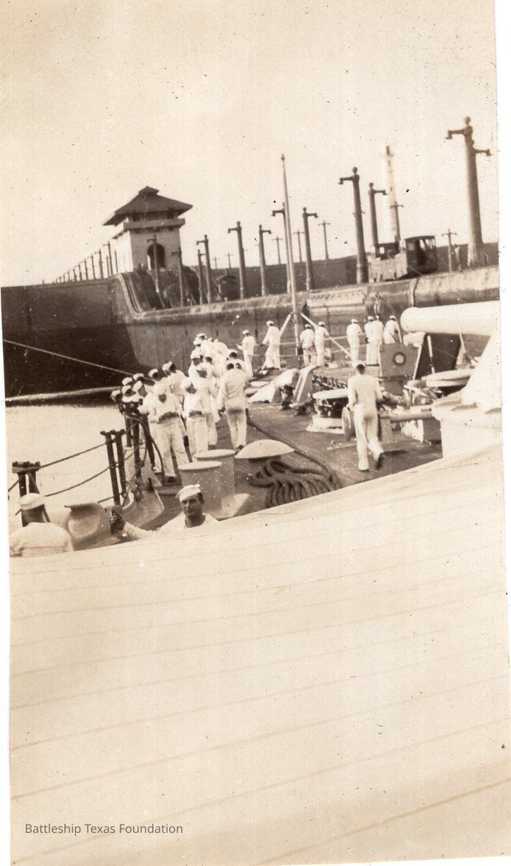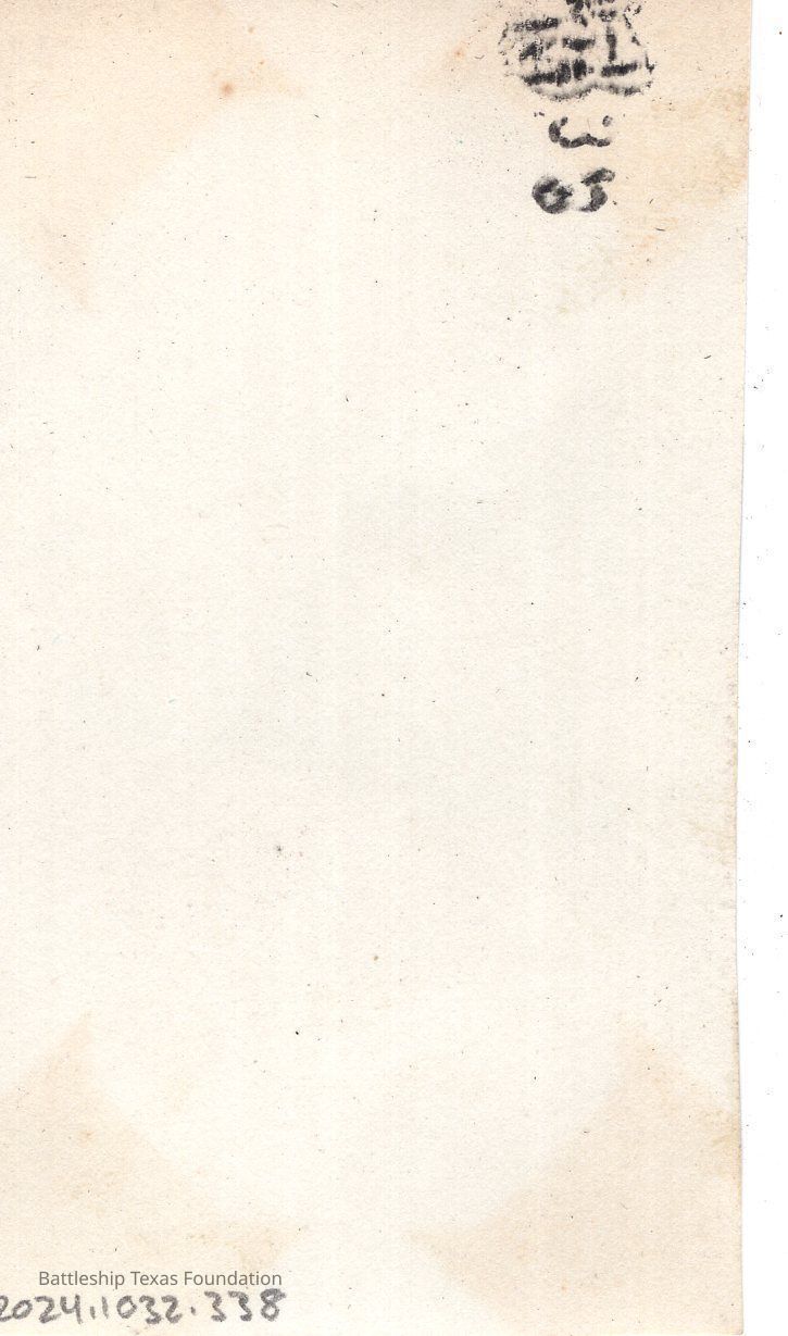 From a donated collection of individual photographs and pages out of a Texas crewmember's photo album. Items donated by the Los Angeles Maritime Museum.
